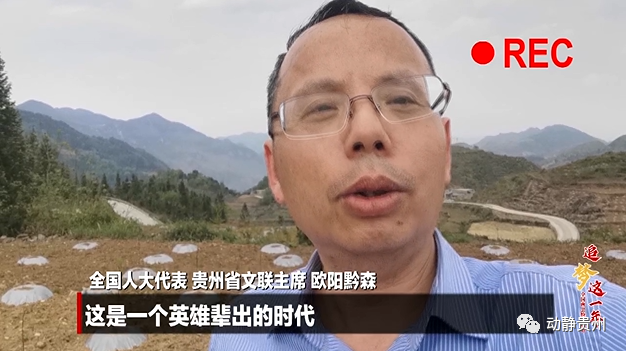 全国人大代表 贵州省文联主席 欧阳黔森:这是一个英雄辈出的时代,作为一个作家要记录下这些英雄,记录下这些无名英雄,无愧于这个伟大的时代。