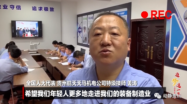 全国人大代表 贵州航天天马机电公司特级技师 姜涛:希望我们年轻人更多的走进我们的装备制造业,涌现出更多的大国工匠。