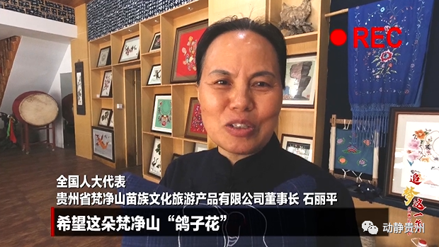 全国人大代表 贵州省梵净山苗族文化旅游产品开发有限公司董事长 石丽平:希望这朵梵净山鸽子花越飞越高、越走越远。