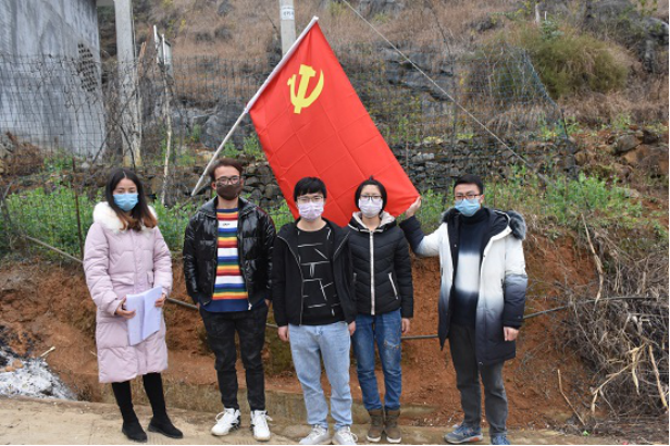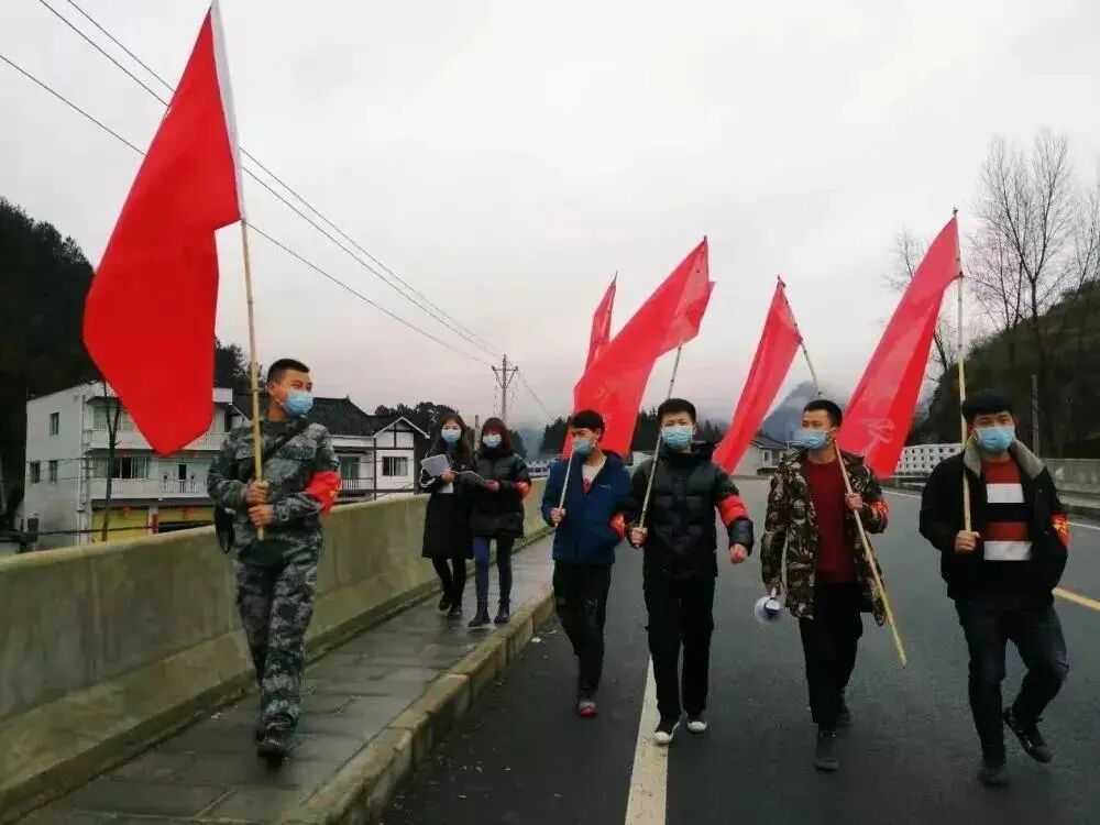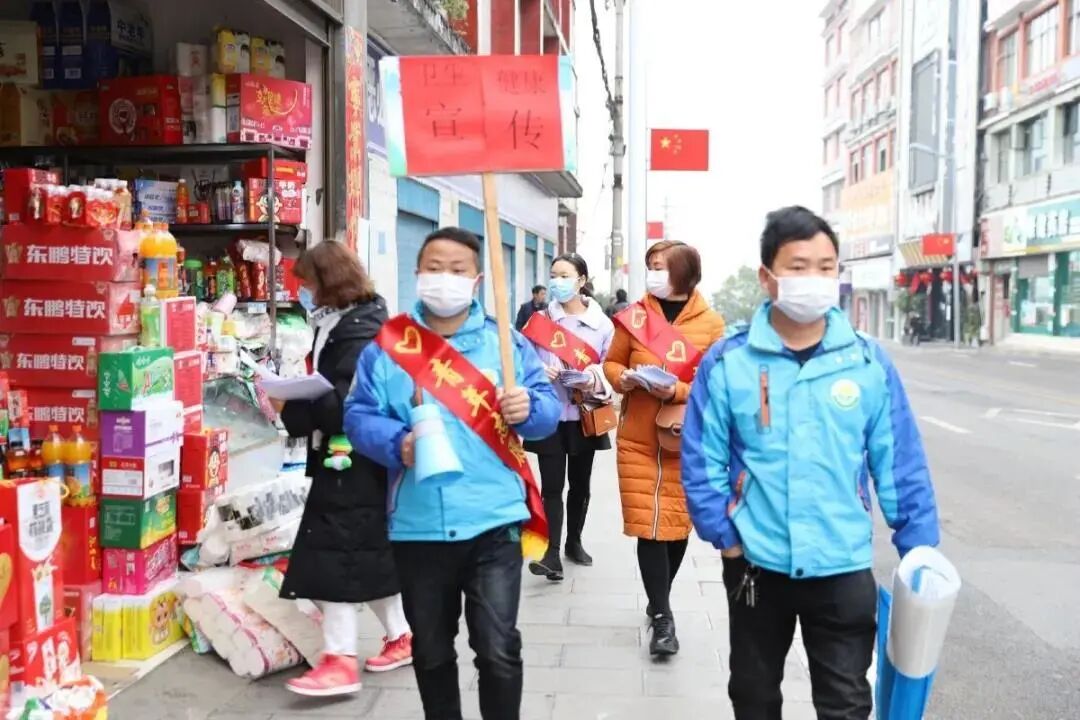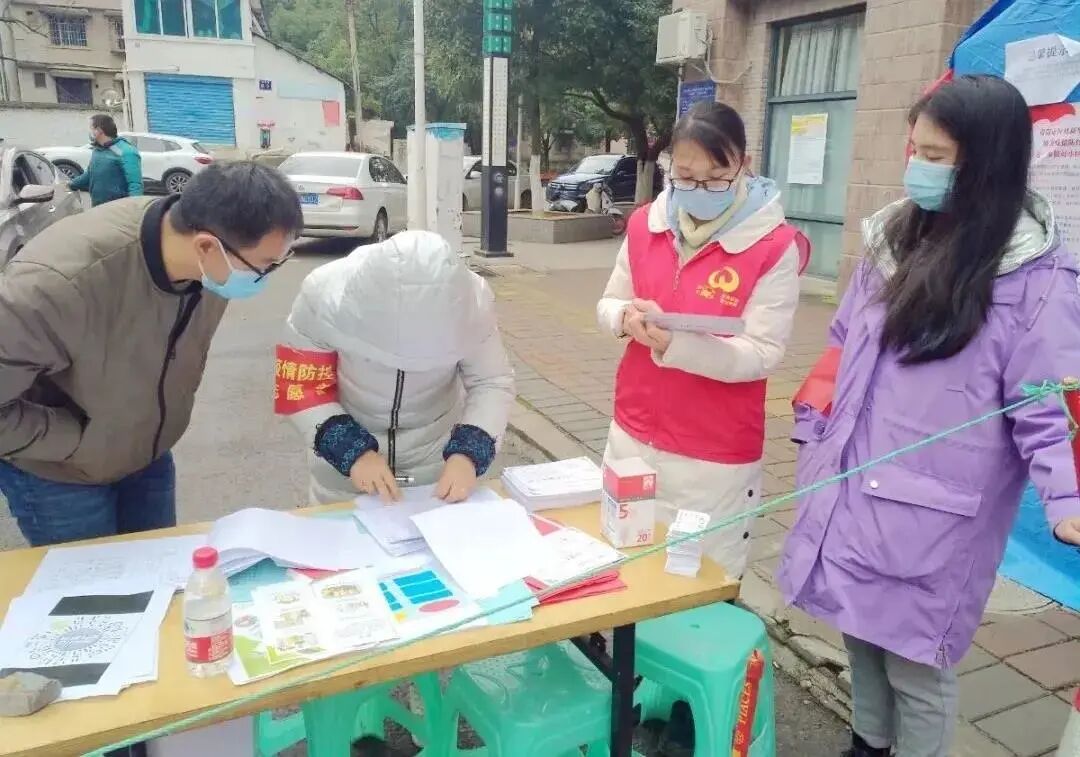 第一书记蔡雷同志和社区志愿者开展疫情防控宣传工作
