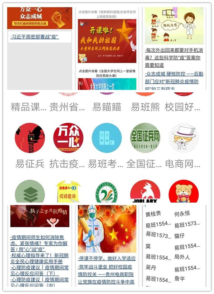 易班作为贵州城市职业学院师生网络思想教育主阵地,特别策划“战疫情 | 贵州城市职业学院战“疫”思想政治教育网络展馆,开设专栏专版,形成专题网络教育内容矩阵,不断传播正能量,凝聚师生广泛共识与磅礴力量。