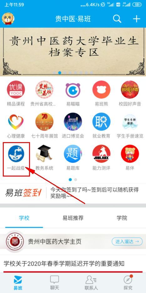 1月23日,贵州中医药大学易班发展中心在平台创建了“易班·一起战“疫””应用,旨在整合疫情防控工作期间的信息资源,发布疫情期间科学防护知识,为广大师生提供更为全面的疫情防控知识学习平台,引导青年学生不信谣、不传谣,共同守卫疫情期间网络思想正能量。2月18日,按照《省委教育工委 省教育厅关于在新冠肺炎疫情防控期间加强高校思想政治教育的指导意见》要求,为进一步发挥学校易班平台线上思政教育作用,集中展示在疫情防控人民战争、总体战、阻击战中,党中央国务院,教育部,省委省政府,全省教育系统的重大安排部署和抗击疫情的有力举措,丰富呈现学校师生在疫情防控期间涌现出的感人事迹,在前期建设的基础上,进一步丰富“易班·一起战“疫””内涵,打造贵州中医药大学思想政治教育网络展馆。