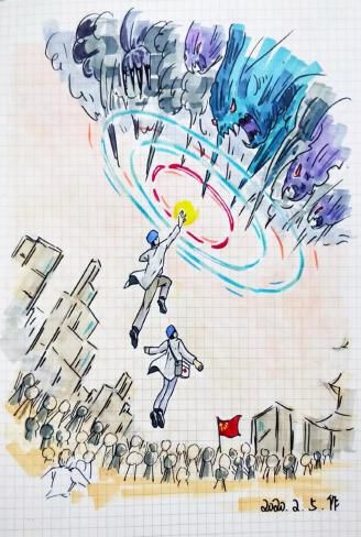 致敬所有英雄,当他们看见护士小姐姐上战场之前剪掉自己心爱的头发泪流满面时,他们也哭了,回到自己小房间拿起画笔,只为了告诉所有一线的战士们,你们冲锋向前的样子是全世界最美的风景,有你们,山河定无恙。