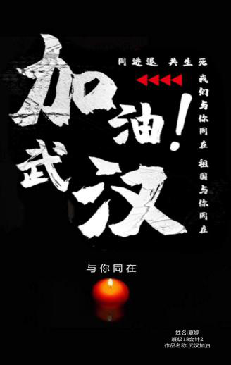 肺炎疫情牵动着亿万国人的心,许多医务人员、部队官兵、交警协警们纷纷请命前往一线与病毒作战,而作为大学生的他们,虽不能去一线战“疫”,但他们用书画、设计的语言,凝心聚力向战“疫”发出我们共同的声音,为疫情最严重的武汉人民鼓劲加油,向战斗在疫情一线的英雄们致敬。