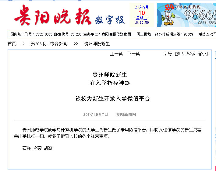贵阳新闻网:贵州师院新生有入学指导神器该校为新生开发入学微信平台