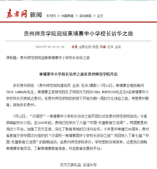 东方网:贵州师范学院迎接柬埔寨中小学校长访华之旅
