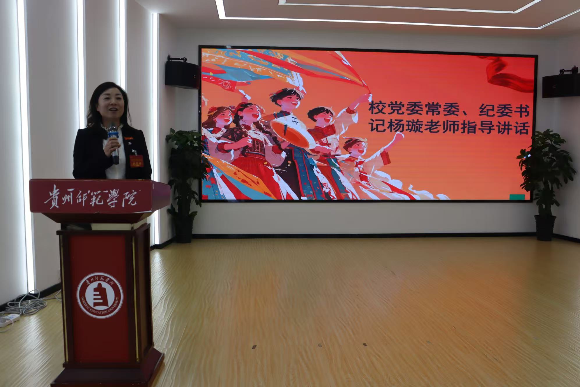 为深入学习贯彻习近平总书记关于民族团结进步的重要论述,铸牢中华民族共同体意识,2025年11月22日,体育学院2024级体育教育一班在大学生事务发展中心开展“民族大团结,共画同心圆主题团日活动。贵州师范学院党委常委、纪委书记杨璇,体育学院党委书记汤士波党委副书记刘华伟副院长朱继伟,校团委兼职副书记陈飞,体育学院工会主席桂红团委指导老师杨友娣参加活动。