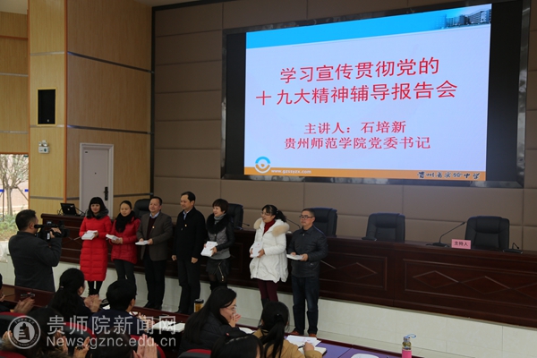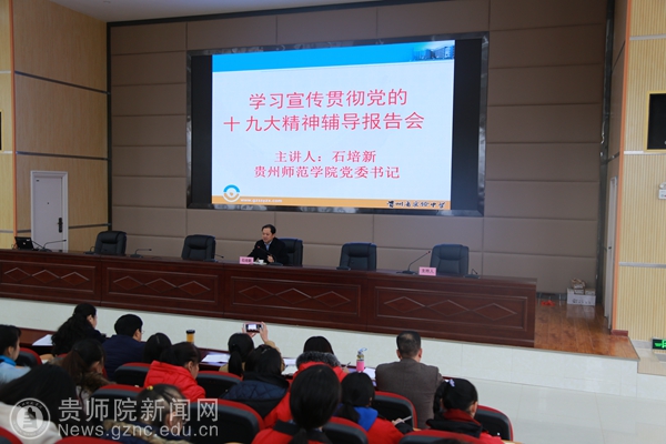 报告会上,石培新从深刻领会习近平总书记参加贵州代表团时的重要讲话精神、深刻领会十九大报告主题、深刻领会习近平新时代中国特色社会主义思想、扎实推进学习宣传贯彻党的十九大精神等方面进行了深入浅出地解读。就习近平参加贵州代表团时对贵州人民表达的深情厚爱与师生进行了交流分享,就习近平新时代中国特色社会主义思想的丰富内涵作了系统阐释。同时,结合师生最关心的问题,对优先发展教育、推进教育均衡发展作了重点解读。石培新指出,十九大报告200余次提到人民,充分体现了以人民为中心的发展思想,蕴含着深厚的人民情怀,针对人民群众最关心最直接最现实的利益问题作出了一系列安排部署,在坚决打赢脱贫攻坚战、优先发展教育、实施健康中国战略等方面给出了政策优惠,强调建设教育强国是中华民族伟大复兴的基础工程,必须把教育事业放在优先位置,加快教育现代化,办好人民满意的教育,顺应民意,说到了人们的心坎上。