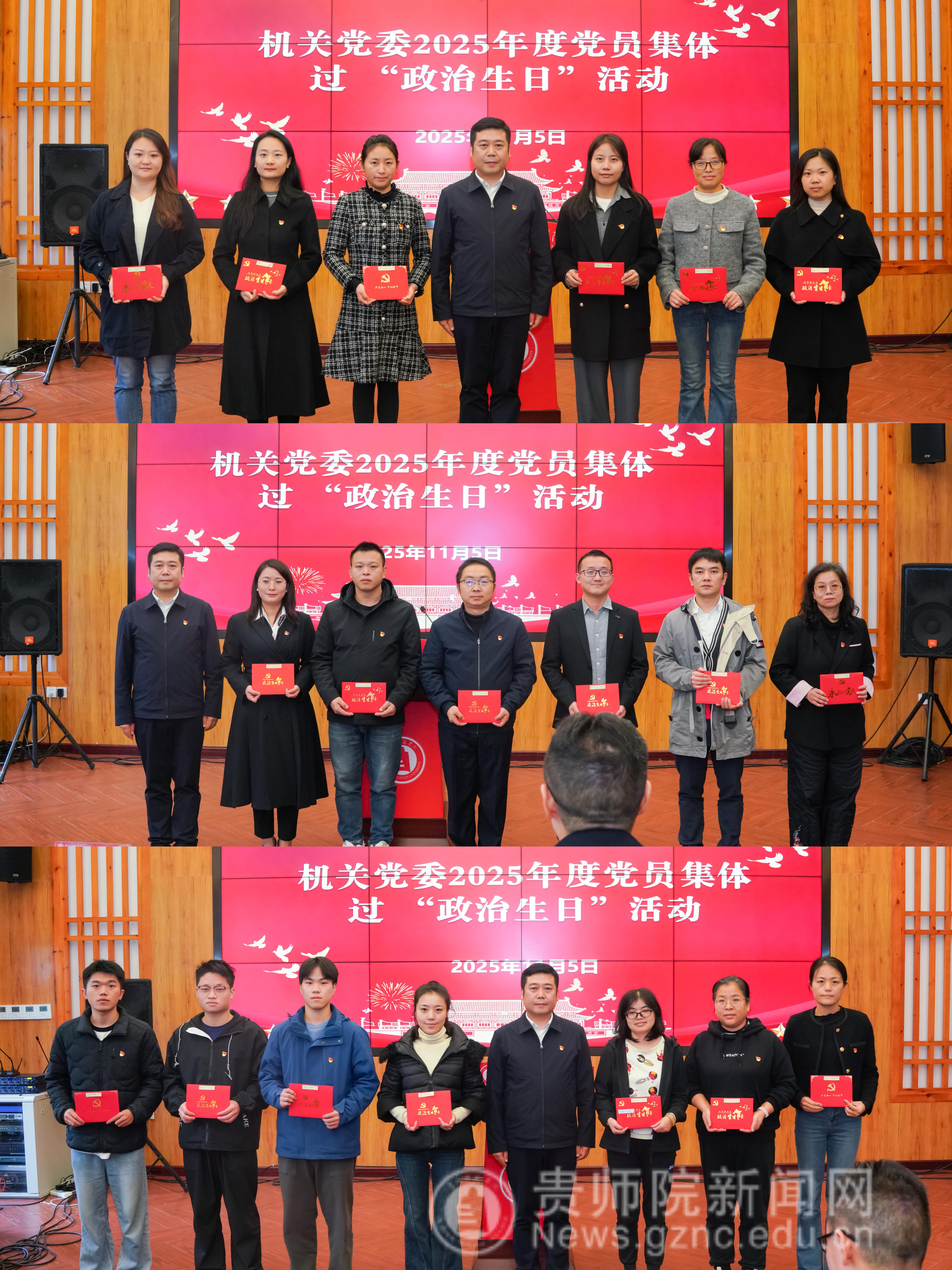 本网讯 为深入强化机关党员政治身份认同,筑牢初心使命根基,激活党组织凝聚力与战斗力,11月5日,机关党委以“追忆初心葆本色·砥砺奋进担使命”为主题,开展党员集体过“政治生日”活动。校党委副书记高勇出席活动,校党委常委、组织部部长、党政办公室主任孙家家,机关党委委员,各党支部书记及各党支部党员代表参加活动。活动由机关党委书记张瑶主持。