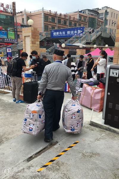 5月28日,保卫处全体人员及物业管理公司安保人员等在校大门口,为学生离校护送最后一程。昨天贵阳下着小雨,我们可爱的安保人员从早上8点一直到晚上8点就站在学校的2号门门口,冒雨帮学生把一袋袋一包包的行李搬上来接他们的一个个车上,送走离校毕业生2700人左右。同学们表示,在离校之际能得到学校保卫处如此人性化的关怀和帮助,感受到了来自母校的温暖,纷纷为师院安保人员点赞!