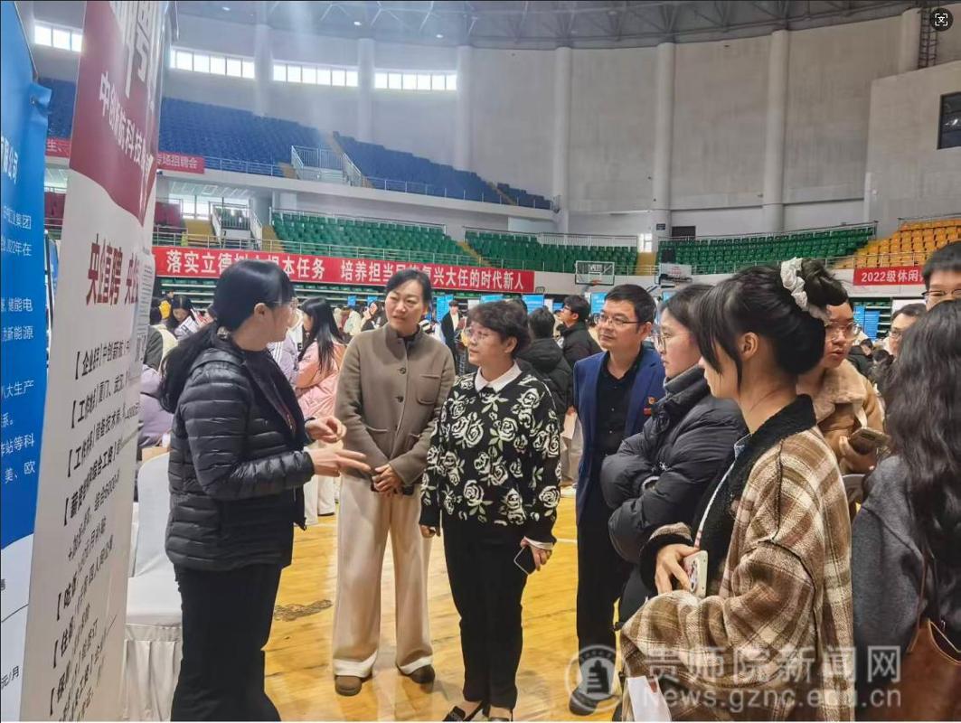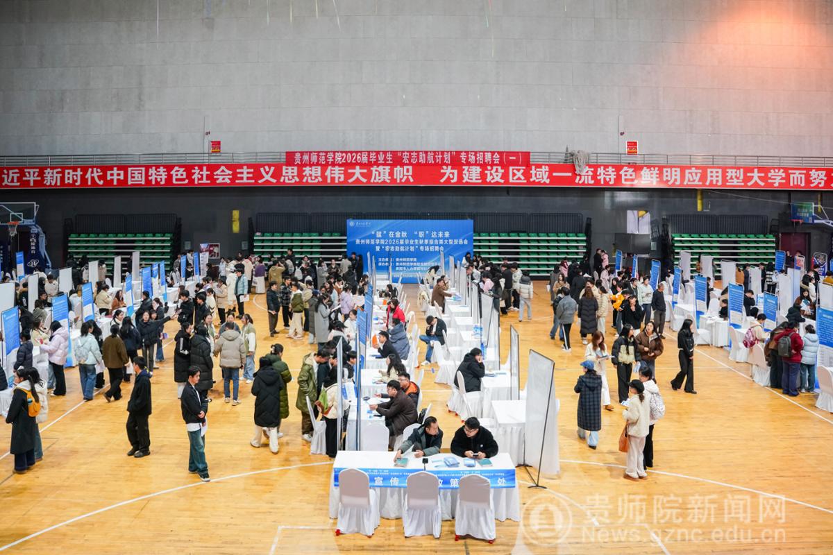 本网讯 为深入贯彻落实党中央、国务院及省委、省政府关于促进高校毕业生就业创业的决策部署,全力抢抓秋季校园招聘黄金期,扎实推进我校2026届毕业生更充分、更高质量就业,12月12日,我校在体育馆成功举办“就”在金秋 “职”达未来——贵州师范学院2026届毕业生秋季综合类大型双选会暨“宏志助航计划”专场招聘会。校党委书记战勇,校长王蜀黔,校党委常委、副校长陈真波到招聘会现场指导。