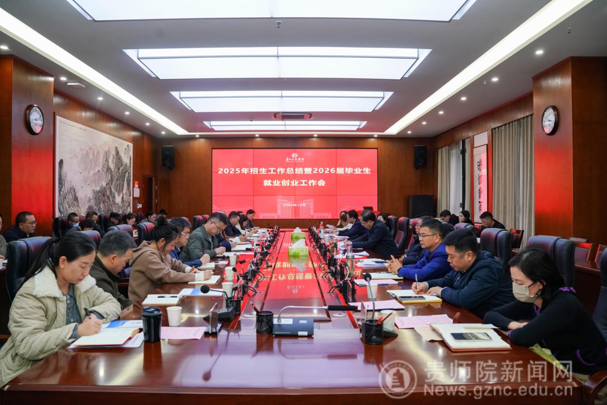 本网讯 为进一步系统总结学校2025年招生工作,科学分析新形势、新变化,精准谋划2026届毕业生就业工作,持续优化学科专业布局,切实增强人才培养与国家战略、区域经济社会发展需求的适配性,全力推动毕业生实现高质量充分就业,12月16日,我校2025年招生工作总结暨2026届毕业生就业工作会在信息楼二楼会议室召开。校党委书记战勇,校党委常委、副校长(正厅长级)赵守盈,校党委副书记高勇、邹晓青,校党委常委、纪委书记杨璇,校党委常委、副校长陈真波,校党委常委、副校长潘运出席会议。会议由赵守盈主持。