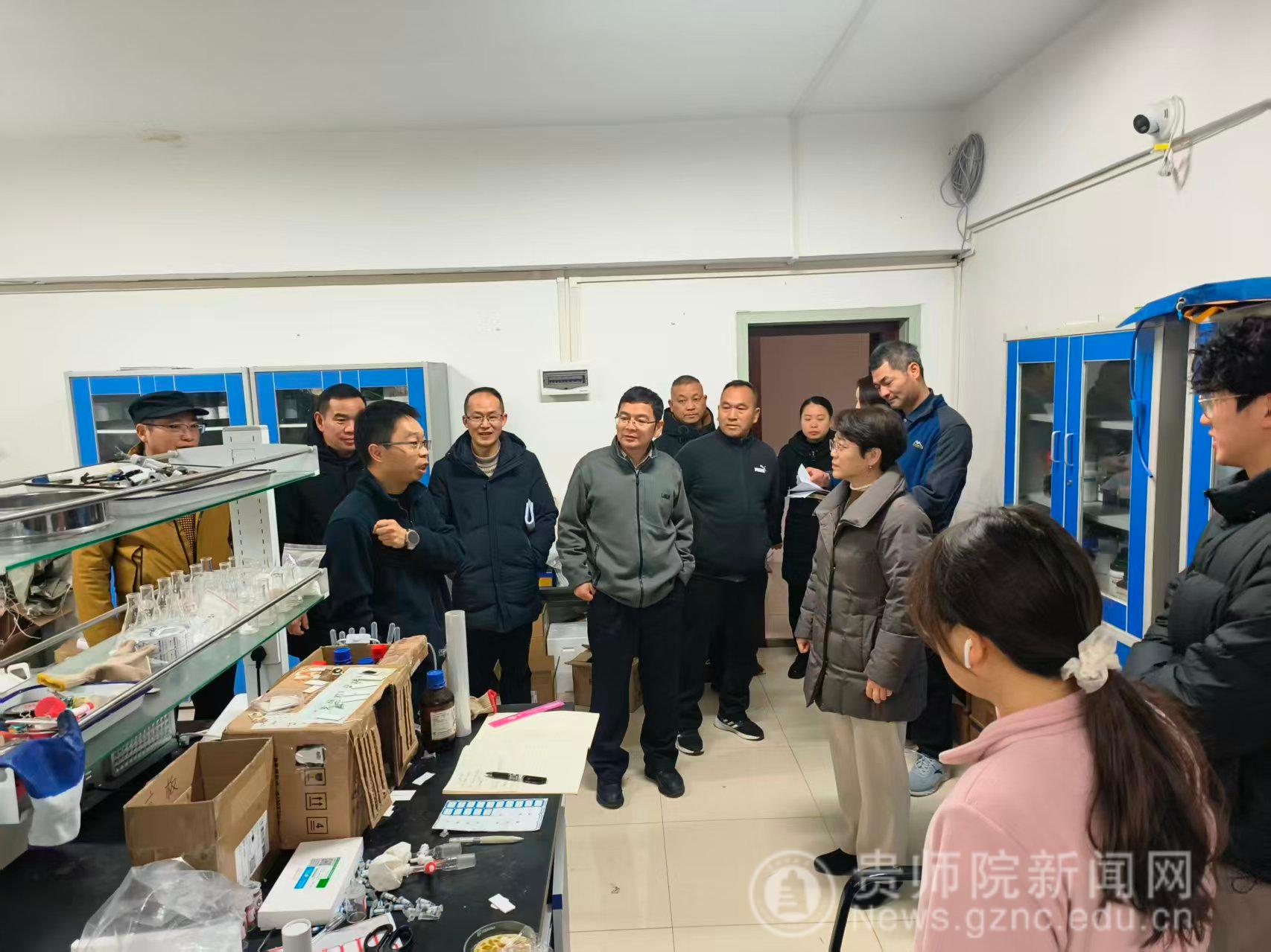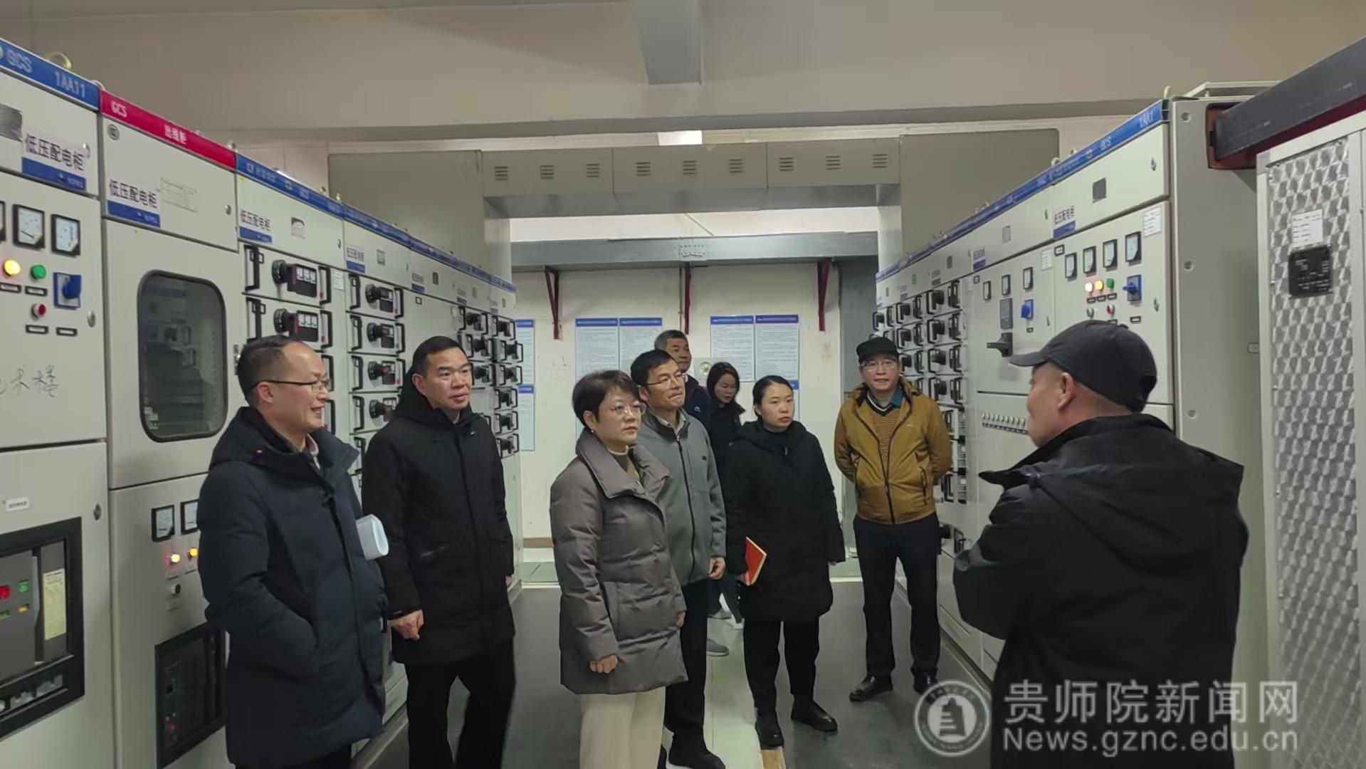 王蜀黔一行先后查看了学校1号配电房、重点实验室、新材料大楼、学校总值班室和校园周边等重点区域,认真查看学校寒假期间安全工作推进落实情况。