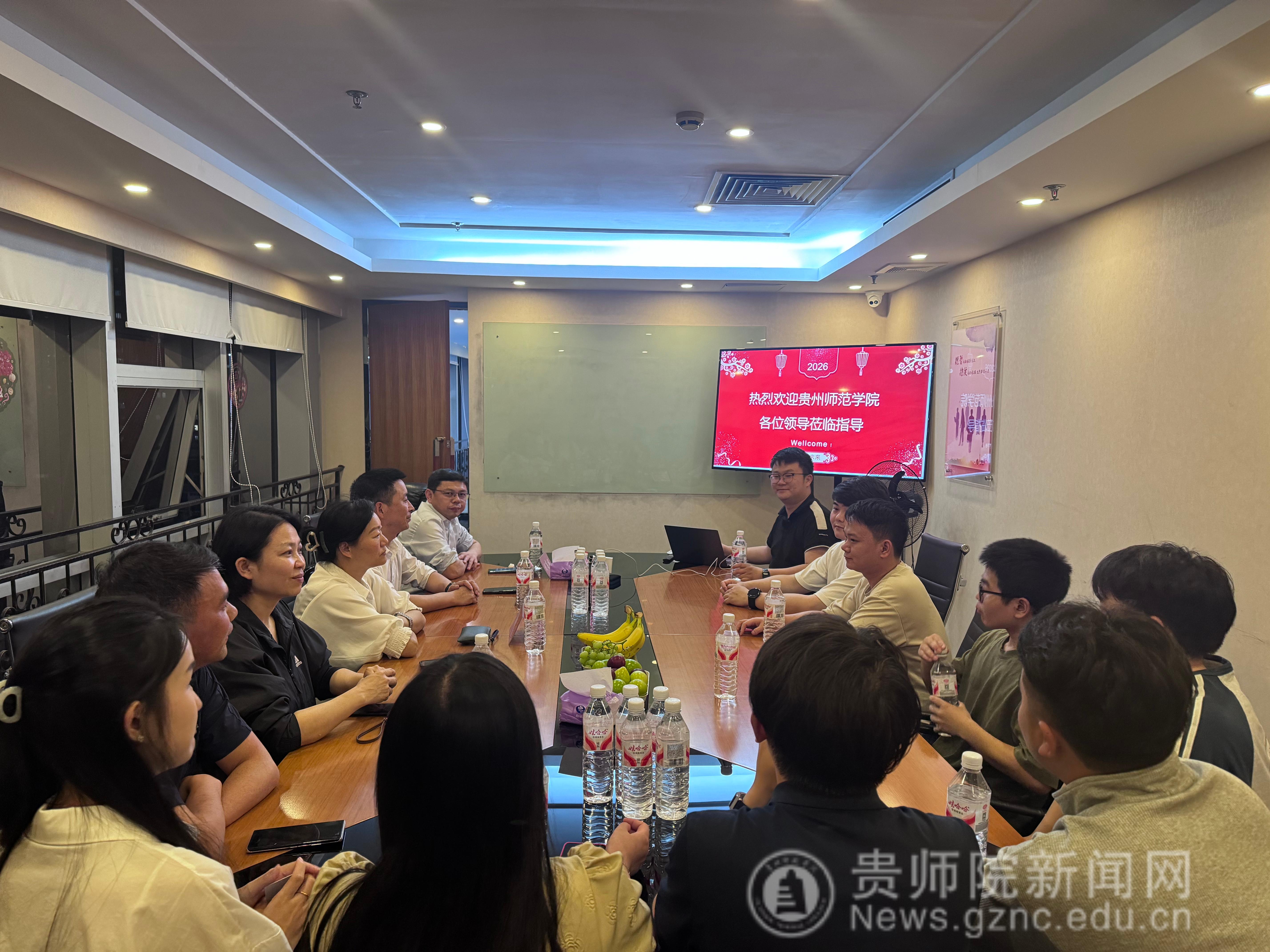 走访过程中,王蜀黔向各企业详细介绍了我校的办学特色、专业设置、人才培养成效及2026届毕业生基本情况。她表示,贵州师范学院始终坚持以服务地方经济社会发展为导向,不断深化教育教学改革,着力提升人才培养质量。此次访企拓岗,既是学校主动适应就业市场变化、精准对接产业需求的重要举措,也是推动校地校企深度合作、实现互利共赢的有效途径。她希望双方以此次活动为契机,在人才培养、实习实训、科研合作、就业招聘等方面建立长效合作机制,共同为毕业生搭建更广阔的就业平台。