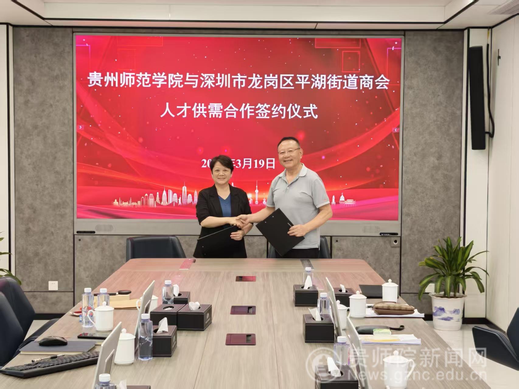 在充分沟通协商的基础上,贵州师范学院与深圳市龙岗区平湖街道商会签订了人才供需合作协议书,双方将建立长期稳定的人才供需协作关系,共同促进人才资源优化配置。同时,学校分别与深圳市聚飞光电股份公司、深圳亚太航空技术有限公司、深圳市领益数控设备有限公司、深圳市楠轩光电科技有限公司、深圳市华南英才科技有限公司、深圳市猿人创新科技有限公司、维客未来科技有限公司等7家企业签订了实践教学基地建设协议书,并为其中4家企业授予“贵州师范学院实习实践基地”牌匾。上述合作成果的取得,标志着学校在拓展珠三角地区就业市场、深化校地校企合作方面迈出了坚实步伐,为进一步提升人才培养与产业需求的契合度,促进毕业生更加充分、更高质量就业奠定了坚实基础。