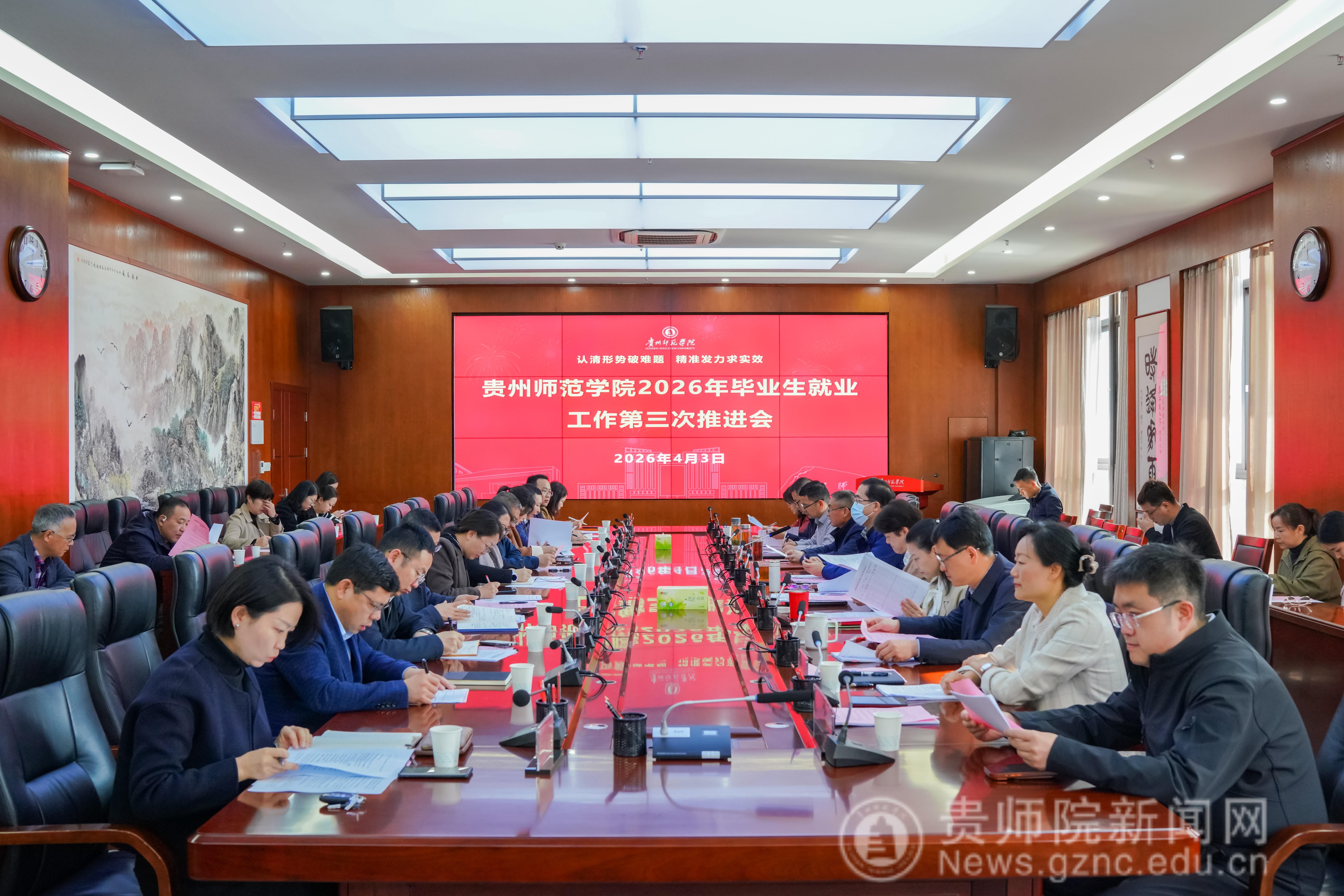 本网讯 为深入学习贯彻习近平总书记关于做好高校毕业生就业工作的重要指示批示精神,全面贯彻党中央、国务院和省委、省政府决策部署,认真落实全国、全省高校毕业生等青年就业创业工作视频会议精神,4月3日上午,我校在信息楼二楼会议室召开2026年毕业生就业工作第三次推进会。全体校领导出席会议,相关职能部门主要负责人、各学院党政主要负责人及招就处全体工作人员参加会议。会议由校党委常委、副校长(正厅长级)赵守盈主持。