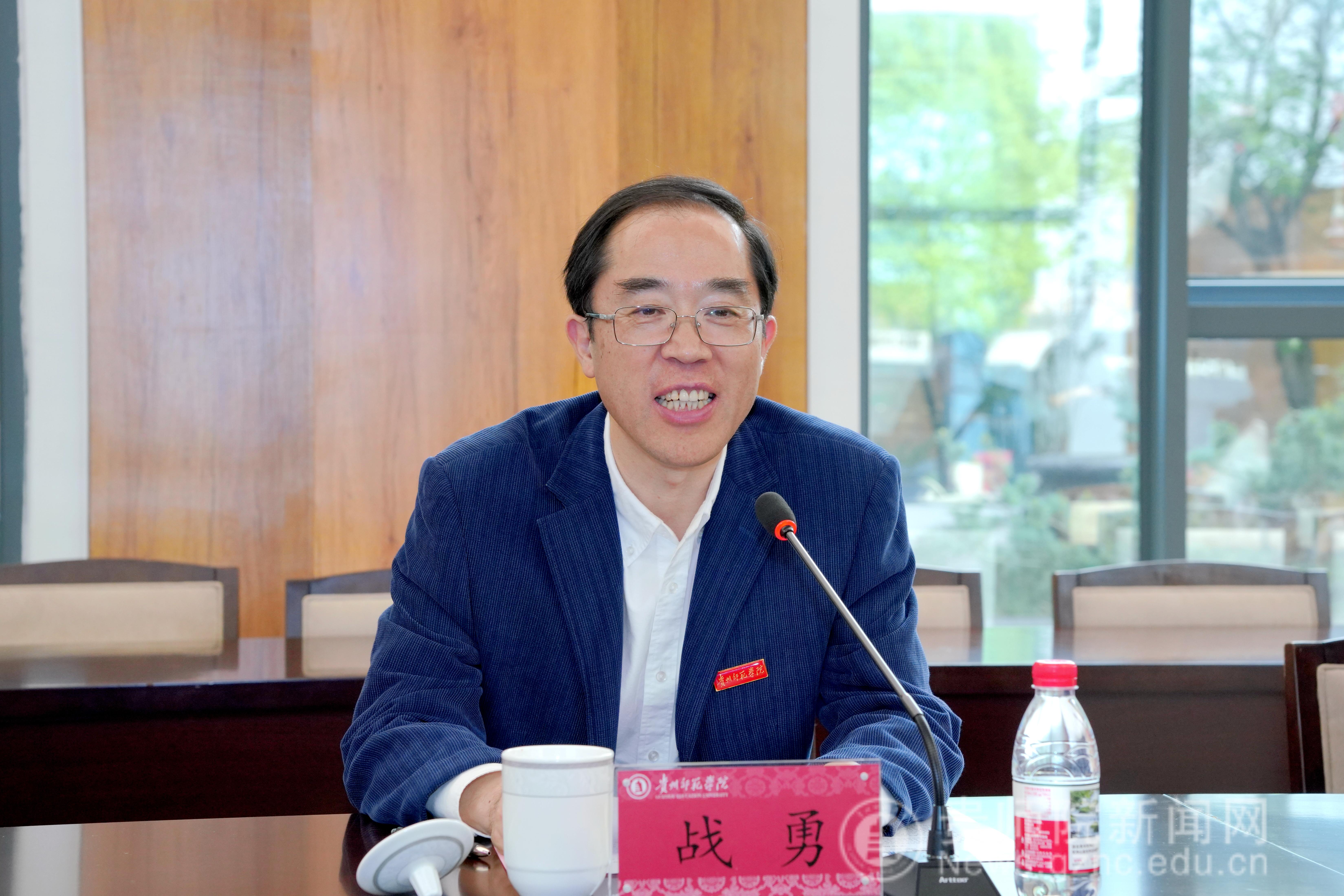 本网讯 4月16日下午,澳门贵州省政协常委、澳门贵州社团总会会长区柏来,澳门圣若瑟大学副校长农韵淇,贵州省委统战部三处处长孔祥龙等一行到访我校。我校党委书记战勇,校长王蜀黔,党委常委、副校长(正厅长级)赵守盈热情接见来访嘉宾,战勇陪同参观校园并出席座谈会,座谈会由赵守盈主持。