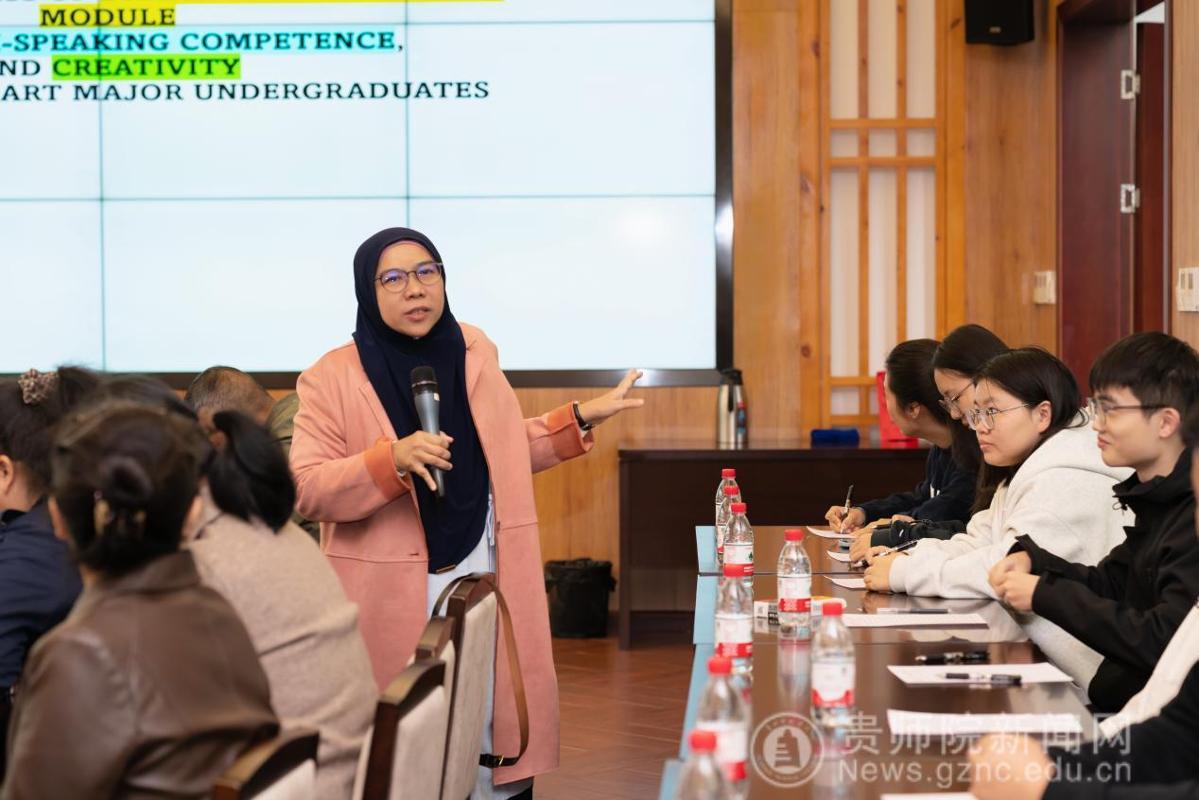 本网讯 2025年10月28日上午,受外国语学院邀请,来自马来西亚理科大学教育学院的博士生导师Rohaya Abdullah教授在贵州师范学院印山书院山水讲堂为师生带来一场精彩讲座。讲座题为“混合式研究在实践中的设计与应用”。讲座由外国语学院副院长罗泳主持,外国语学院全体教师和各学院研究生参加了本次讲座。