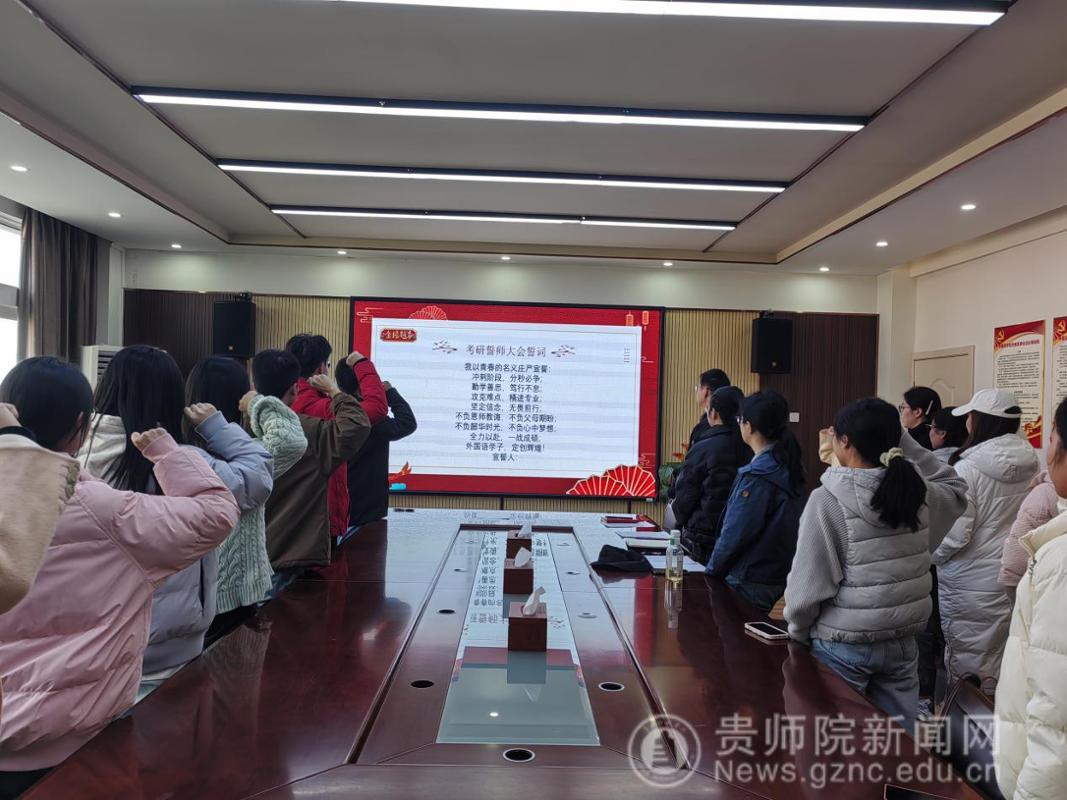活动尾声,全体考研学子高举右拳,庄严宣誓,铿锵誓言响彻现场,彰显着决战考研的坚定决心。