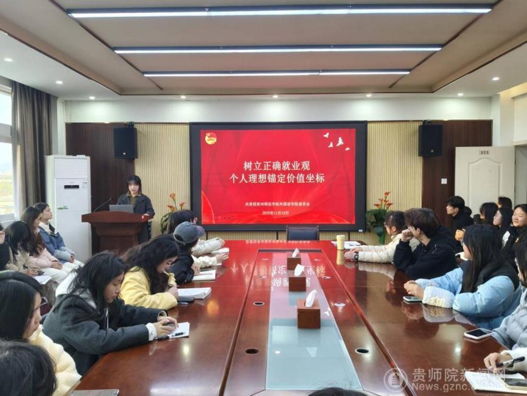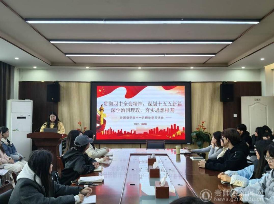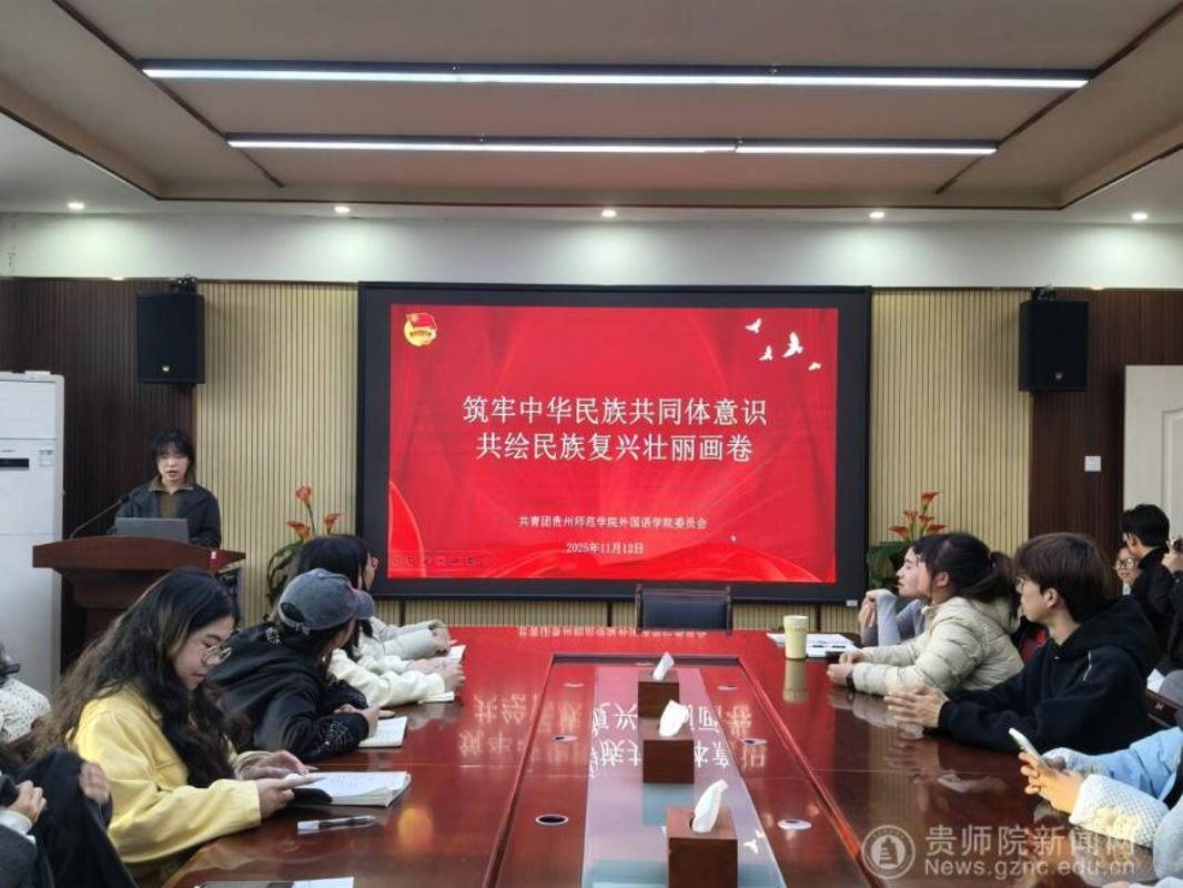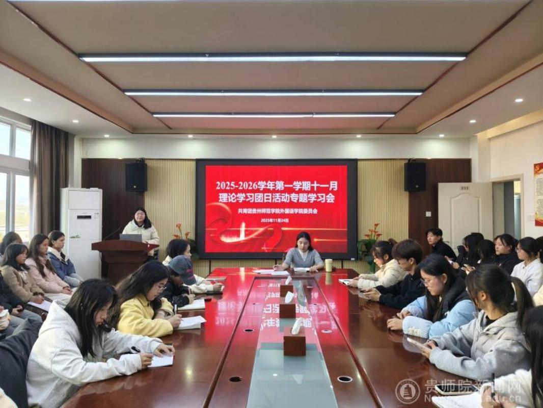 本网讯 为引导团员青年坚定理想信念、厚植家国情怀、明晰成长方向,2025年11月24日,外国语学院2025-2026学年第一学期十一月理论学习团日活动专题学习会在学院会议室顺利举行。本次学习会由学院团委书记李菁菁老师主持,团委学生会全体成员、繁星外语社主席团及各班团干部满怀热忱参与学习,在思想淬炼与交流探讨中凝聚青春奋进力量。