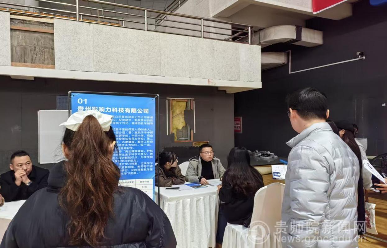 本网讯 为精准对接行业人才需求,深化校企协同育人机制,拓宽英语、翻译两个专业学生就业渠道,12月12日,外国语学院邀请贵州影响力科技有限公司、贵州星华鹰文化艺术发展有限公司、鲁政教育有限公司、贵州匠诚空间装饰设计工程有限公司、南明区山水中学、贵州顺成劳务管理有限公司、贵阳市南明区实验一中七家单位莅临校园,开展校企合作,同步推进学生实习就业对接与人才培养调研工作。学院党委书记严兴诚、毕业班辅导员谢宏出席活动。