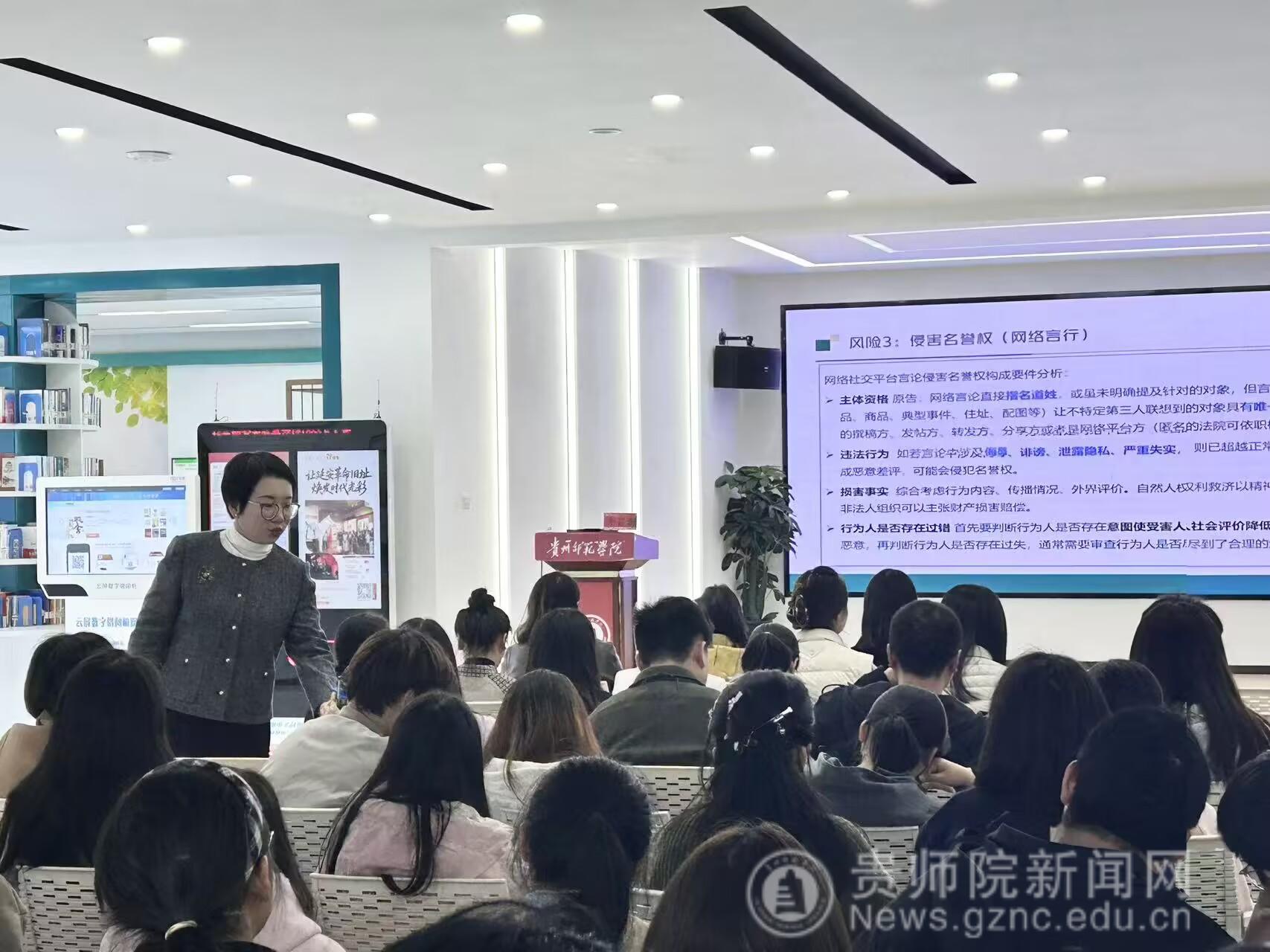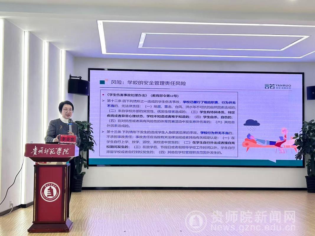 本网讯 11月6日,由贵州师范学院荏苒时光辅导员工作室承办的“法律素养与能力提升——辅导员对大学生法律问题解决对策”专题讲座,暨第四十九期辅导员沙龙活动在大学生事务中心顺利开展。北京浩天(贵阳)律师事务所高级合伙人、贵阳市律师协会合规专委会主任李若黎受邀担任主讲人,全校40余名辅导员及学生代表到场参与,共同学习大学生法律问题的应对之道。活动由荏苒时光辅导员工作室主持人、教育科学学院专职辅导员申苒主持。
