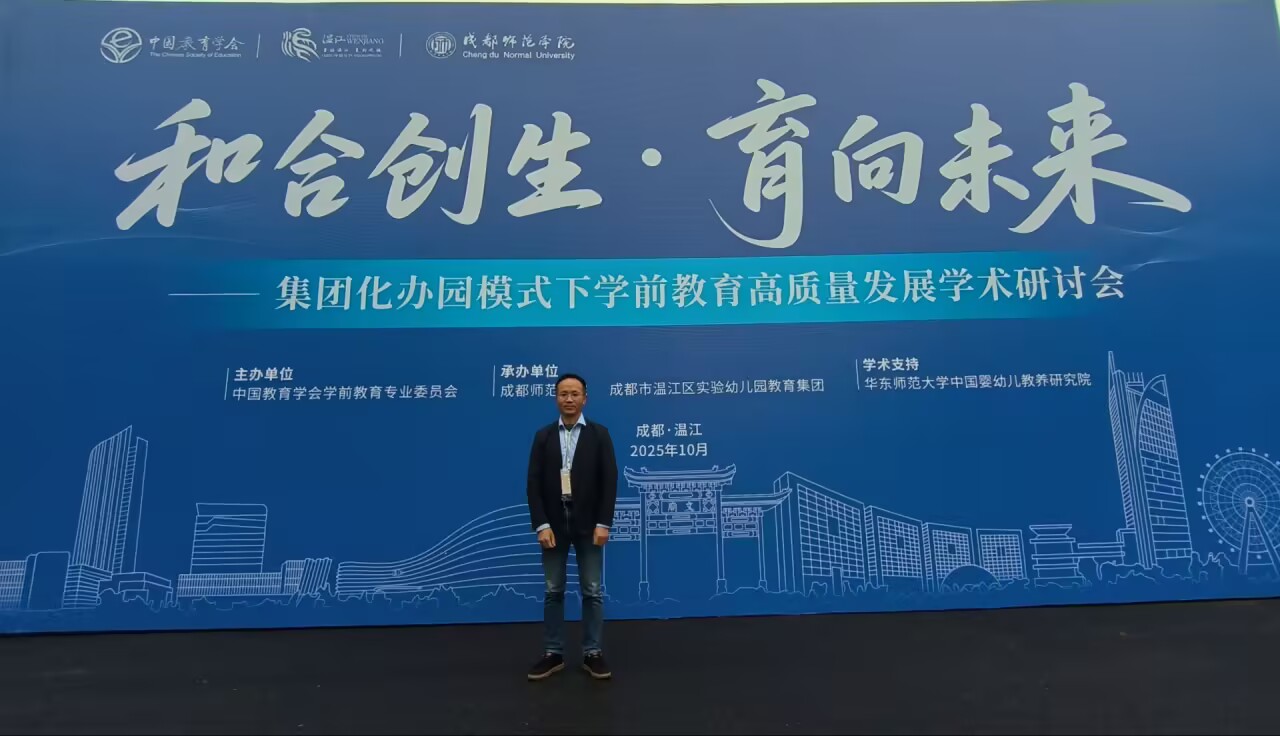 2025年10月23日至24日,以“和合创生·育向未来——集团化办园模式下学前教育高质量发展”为主题的中国教育学会学前教育专业委员会学前教育高质量发展学术研讨会在成都市温江区举行,我校教育科学学院副院长黎平辉教授前往参加,并赴四川师范大学教育科学学院进行高层次人才引进的现场宣讲。