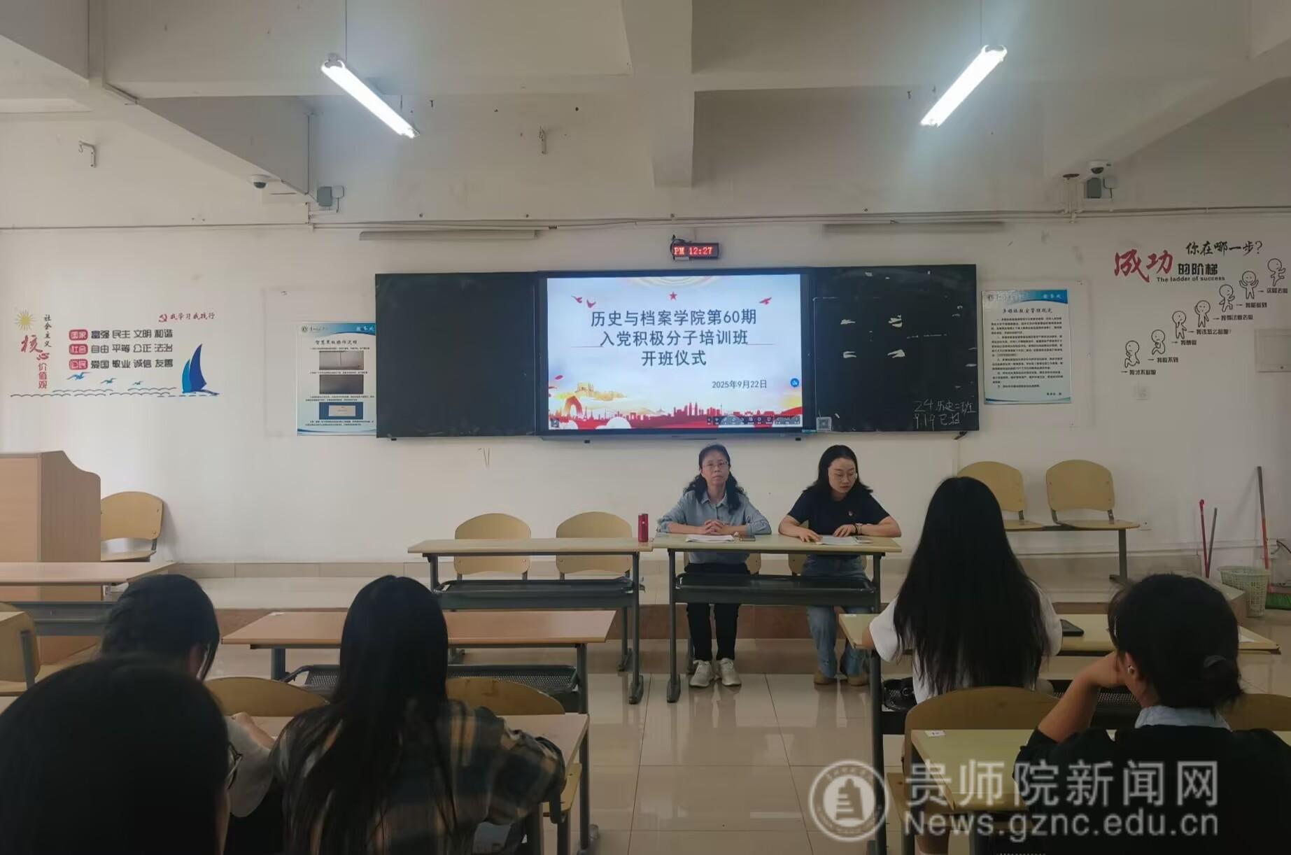 为深入学习贯彻习近平新时代中国特色社会主义思想,进一步加强入党积极分子培养教育工作,提高入党积极分子政治素质和理论修养,2025年9月22日,历史与档案学院第60期入党积极分子培训班开班仪式暨开班第一课在明德楼423隆重举行。本次开班仪式由汪远秀主持,学院党委书记杜景出席并讲话。