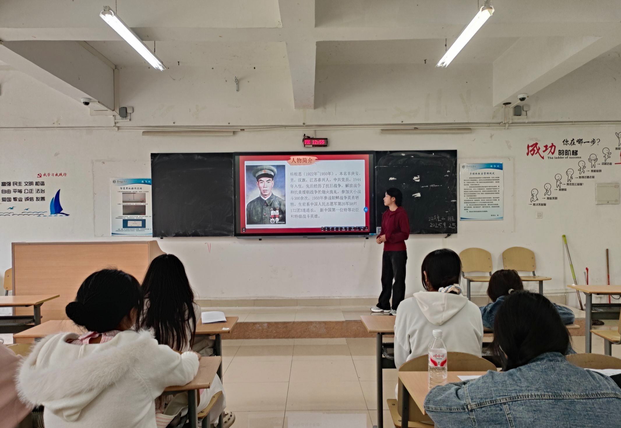 本次全体学员共分为五个小组,学员们根据“筑牢信仰之基:从理论武装到行动自觉的向党组织靠拢路径”的主题进行汇报,用朗读红色故事、唱红歌、诗歌朗诵、PPT汇报等多种形式进行学习总结交流。其中,第一小组通过深情朗诵诗歌《红船,从南湖起航》,以红船为核心意象,回溯了其从南湖启航的历史起点。它生动再现了先辈们在风雨中擘画未来的壮举,诠释了红船精神的初心内核。第五小组则深情讲述了特级战斗英雄杨根思的人物故事:杨根思同志在抗美援朝战争中,率部坚守小高岭阵地,面对敌军多次猛攻,他打完子弹用刺刀、石块搏斗,最后抱起炸药包冲入敌群,与敌人同归于尽。他用生命诠释了“三个不相信”的英雄誓言让在场同学动容。