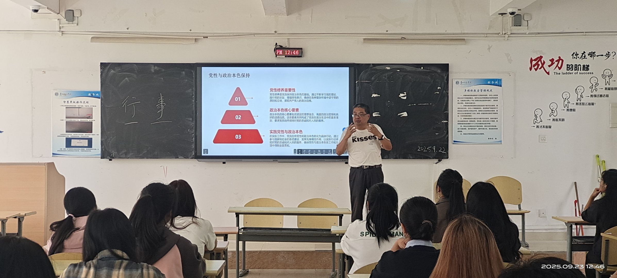 万国崔首先围绕“党性”二字展开,系统地阐释了“什么是中国共产党人的党性”、“党员干部党性修养与检验”、“共产党人如何锤炼党性”以及“党性的新时代意义”。接着,万国崔指出:党性修养是党员保持政治本色的基础,要通过不断地学习党的理论,践行党的宗旨,增强党性意识,确保在各种复杂环境中坚守党的原则和立场,展现共产党人的政治品格。此外,还特别强调:党性修养一定要从“行”上下功夫,作为积极分子,更要注意自身的行动;同时,也要从“事”上着手,要从“事”上磨炼自己,培养自己干事的能力。最后,希望积极分子能够发挥自己在学习和生活中的先锋模范作用,早日成为合格的共产党员。