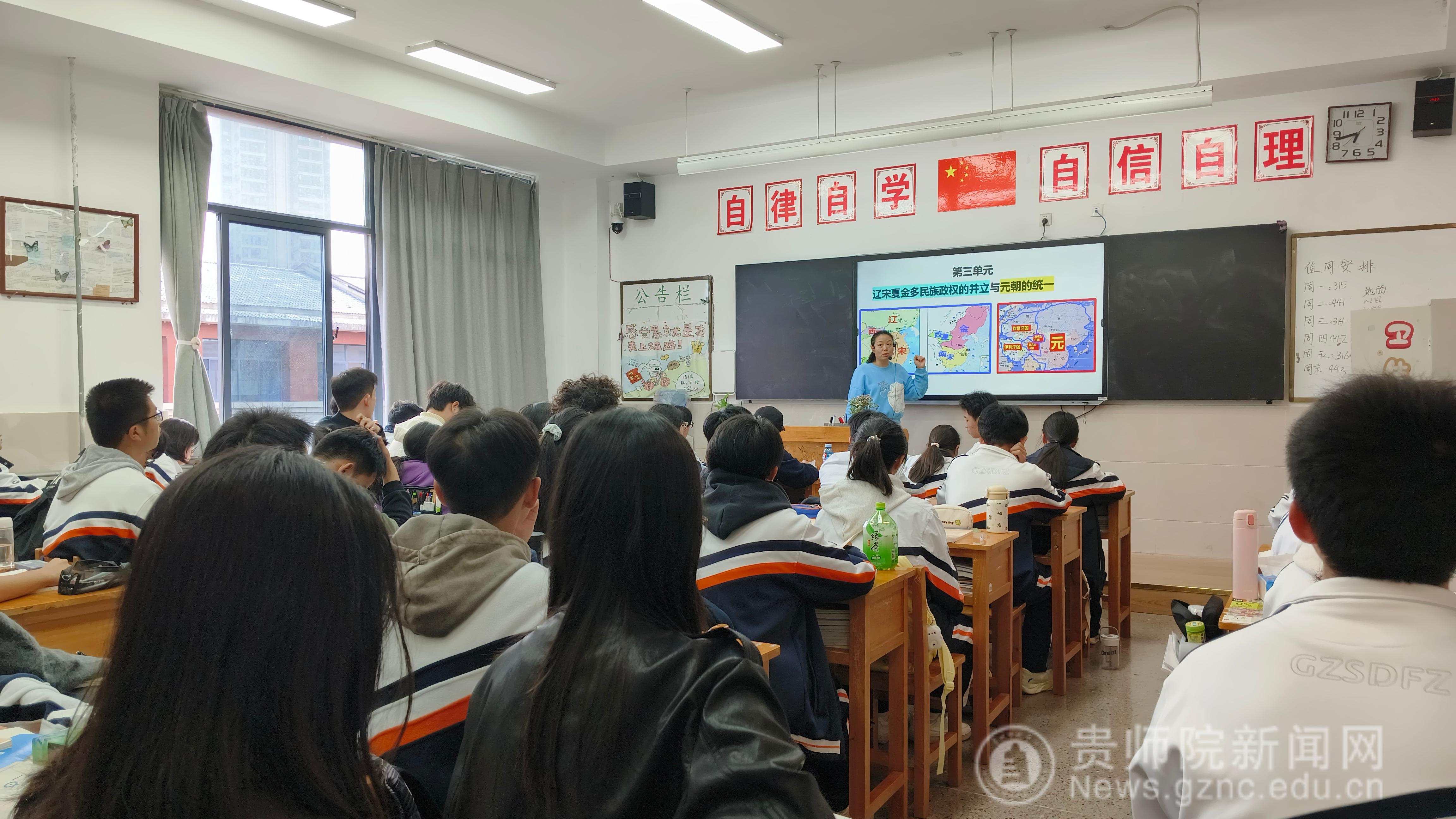 本网讯 10 月 28 日,贵州师范学院历史与档案学院历史系 2023 级 106名师范生(含优师生)赴贵州师范大学附属中学(花溪大学城校区)开展学习实践活动。此次实践依托《学科课程与教学论》课程的‘课堂观摩 — 教研交流’实践模块,由历史系系主任、课程实践指导教师梁中美,与优师生项目负责人朱更勇带队,搭建起高校师范教育与基础教育协同衔接的实践育人桥梁。