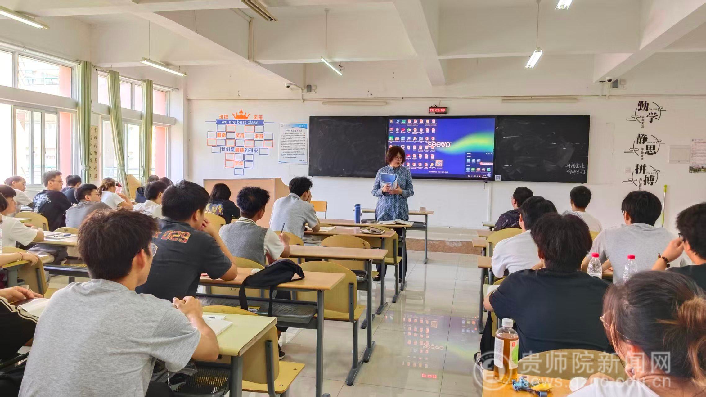 9月28日,明德楼425教室迎来了一场聚焦师范能力提升的研学活动。此活动旨在提升师范生研读教材和备课讲课的能力。本次活动由《学科课程与教学论》的任课教师梁中美、朱更勇共同主持,特邀贵阳市教科所焦京霞老师莅临指导。2023级历史学一班、二班全体同学参与。