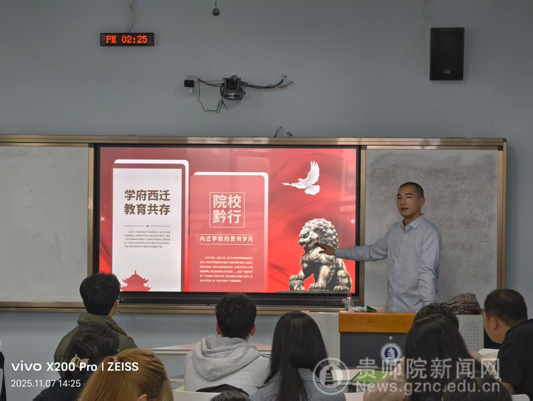 11月7日下午,贵州省博物馆到我院,开展抗战胜利八十周年主题思政课活动。本次活动通过专题授课、文物展览相结合的形式,为2023级历史学专业的学子们带来了一堂思想政治教育课。
