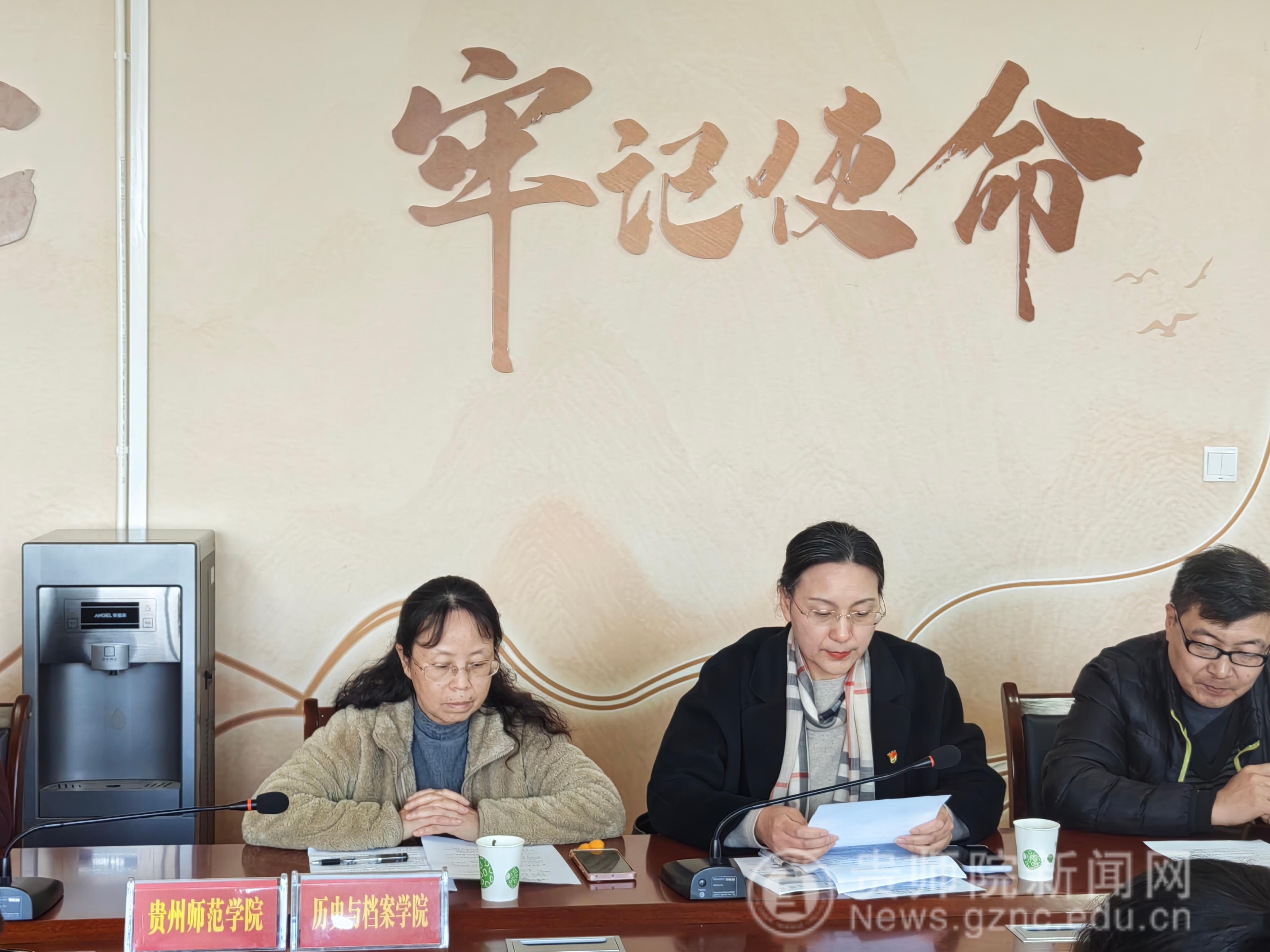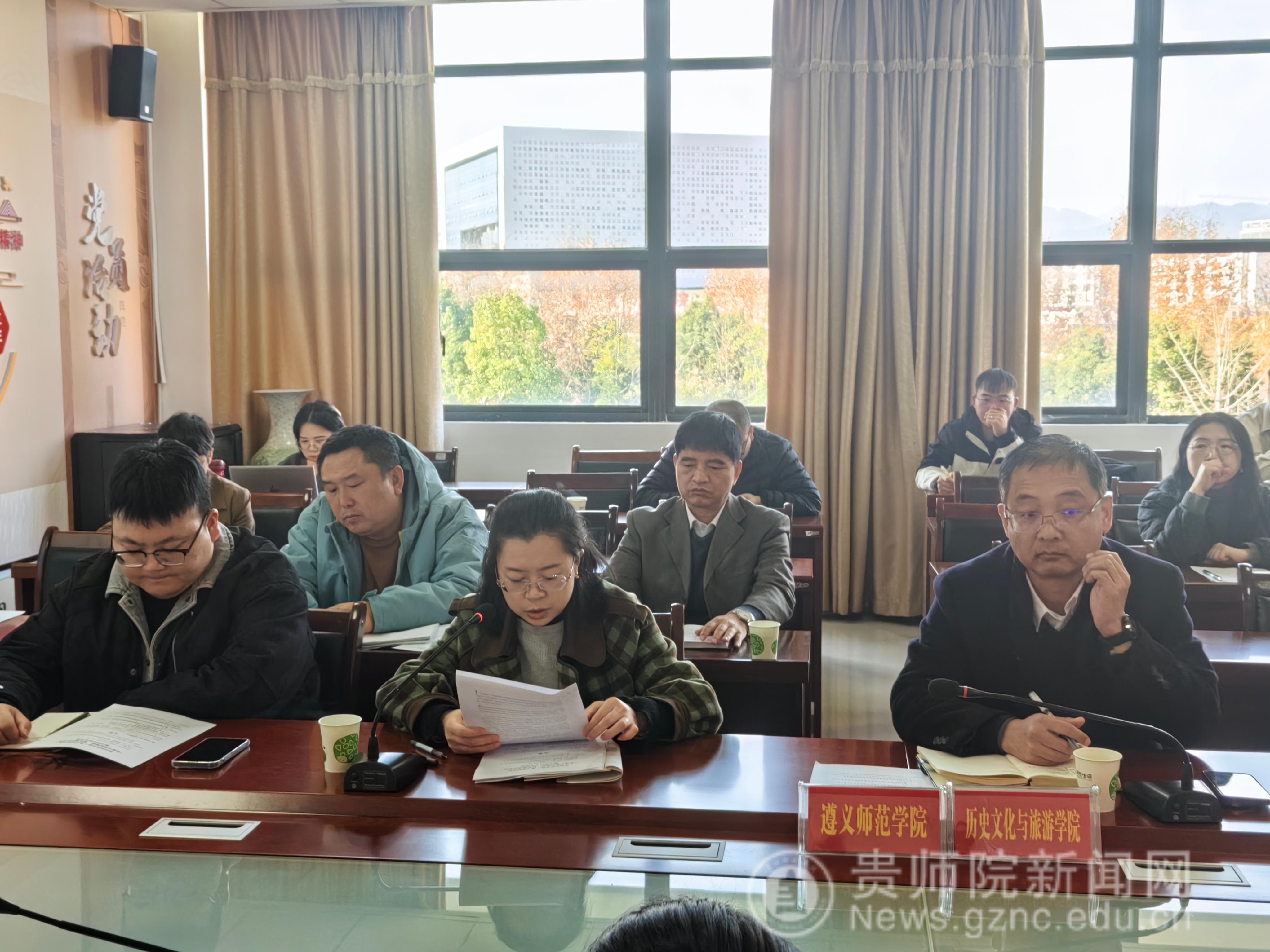 本网讯 为深入学习贯彻习近平新时代中国特色社会主义思想,全面落实党的二十大关于 “推进文化自信自强”“传承红色基因” 的重要部署,落实《中国共产党普通高等学校基层组织工作条例》中“围绕中心抓党建、抓好党建促业务” 的要求,充分发挥高校教师党支部在教学科研中的引领作用,11 月 28 日,贵州师范学院历史与档案学院教师党支部与遵义师范学院历史文化与旅游学院教工第一党支部联合开展 “红色教育启程·党建联建共进” 11月份主题党日活动。活动由遵义师范学院历史文化与旅游学院教工第一党支部书记郎丽娜主持,双方学院教师代表共 29 人参加。