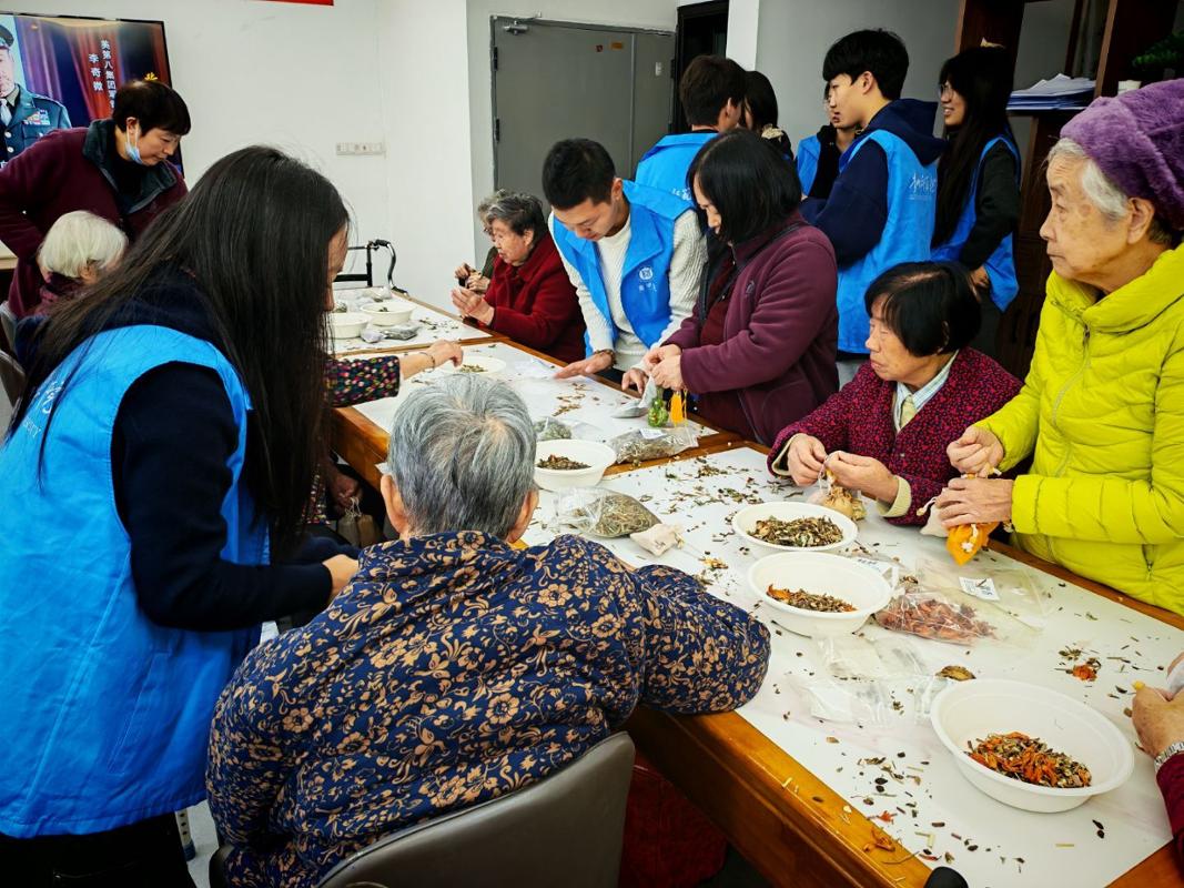 本网讯,为了传承中华传统民俗文化,为养老院的老人们送上一份特殊的关爱与祝福。11月2日,商学院商善黔行志愿队走进康葆养老院开展“巧手制香囊,温情暖重阳”主题志愿活动。志愿者们与老人们携手合作,一针一线缝制香囊,在氤氲药香中传递浓浓温情,为养老院增添了欢声笑语。活动当天,志愿者们提前抵达养老院,将精心准备的艾草、薰衣草、陈皮、丁香等天然香料,以及彩布、丝线、流苏等制作材料整齐摆放。老人们在志愿者的搀扶下围坐一堂,脸上洋溢着期待的笑容。志愿者向老人们详细介绍了香囊的历史渊源、药用功效和制作技巧,从裁剪布料、填充香料到穿针引线、装饰流苏,一步步耐心示范讲解。现场氛围温馨而热闹。年轻志愿者们手把手指导老人穿针引线,遇到视力不佳或动作不便的老人,便主动帮忙完成精细工序;欢声笑语中,一个个造型别致、香气四溢的香囊逐渐成型,有的绣着吉祥纹样,有的缀着彩色流苏,每一件都承载着满满的心意。活动尾声,老人捧着亲手制作的香囊,爱不释手地挂在衣襟上。一针一线系牵挂,一一味寄温情。此次香囊制作志愿活动,不仅为老人们送上了兼具实用价值与文化内涵的礼物,更搭建了青年人与老年人沟通交流的桥梁。志愿者们用真诚与爱心,让传统文化在关怀中传承,让敬老爱老的传统美德在实践中延续,为这个季节增添了最温暖的底色。据悉,商善黔行志愿队将持续开展各类养老志愿活动,用实际行动为老年群体带去更多关爱。