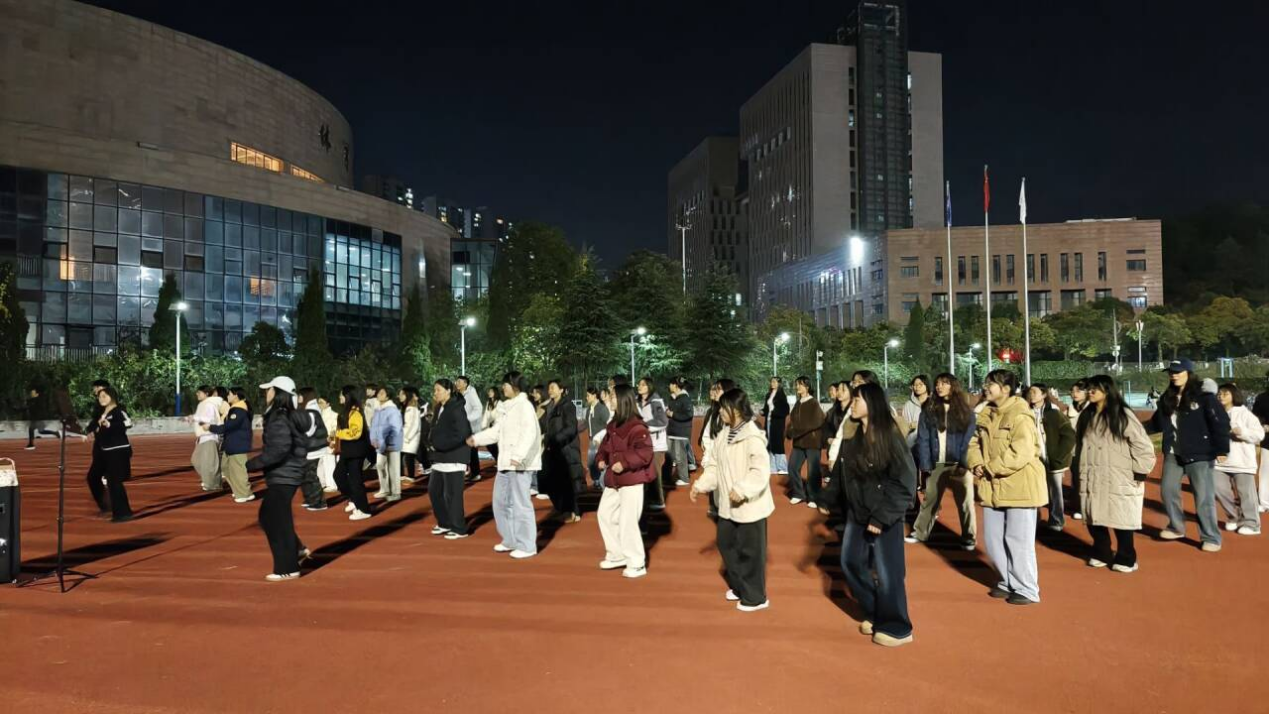 从陌生到熟悉,从羞涩到放开,同学们在舞步的变换中忘却了烦恼,脸上洋溢着灿烂的笑容。整齐的动作、欢快的节拍,构成了校园里一道独特又温暖的风景线。此次广场舞减压派对,不仅为同学们提供了放松身心的平台,更以轻松有趣的方式增进了彼此的交流,让青春活力在校园中尽情绽放。