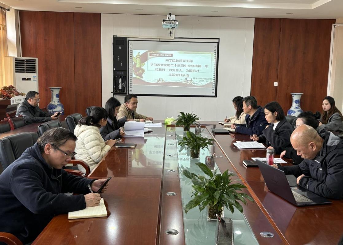 本网讯 为深入学习领会党的二十届四中全会精神,切实把思想和行动统一到党中央决策部署上来,12月15日,商学院教师党支部在第三次集中大课之后迅速开展践行“为党育人、为国育才”初心使命的主题党日活动。此次主题党日活动通过“专题党课+研讨交流”的形式,推动党的二十届四中全会精神在基层党支部落地生根,进一步凝聚教师党员的思想共识,为学院党建与业务融合发展注入强劲动力。
