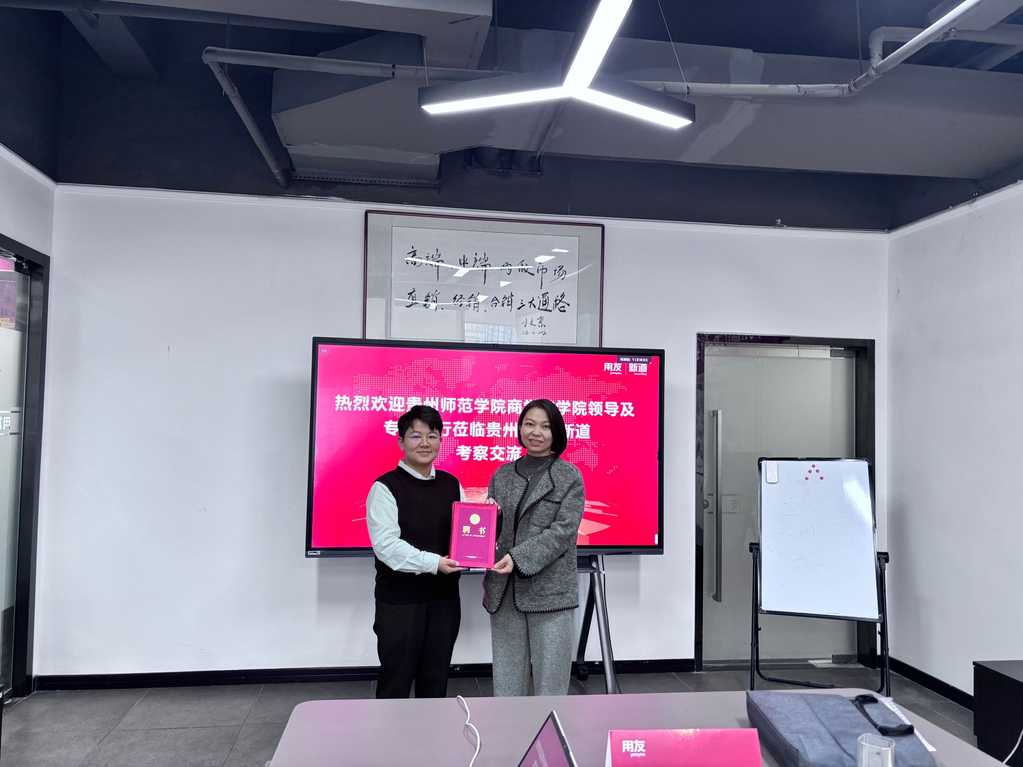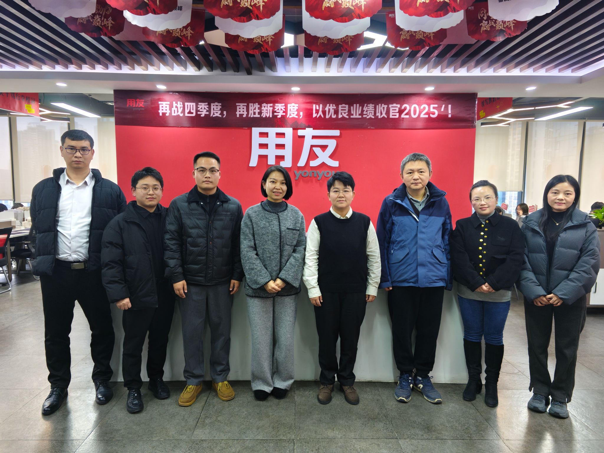 本网讯 12月16日,商学院黄丹院长一行赴用友新道科技有限公司开展“校企合作深化+访企拓岗促就业”专题交流座谈,既围绕财务管理方向虚拟教研室建设事宜深入对接,更聚焦就业岗位拓展、人才供需匹配等核心议题,以产教融合为纽带,为学院创新教研组织形态、培育数智化财经人才、拓宽学生就业渠道明确实践路径。