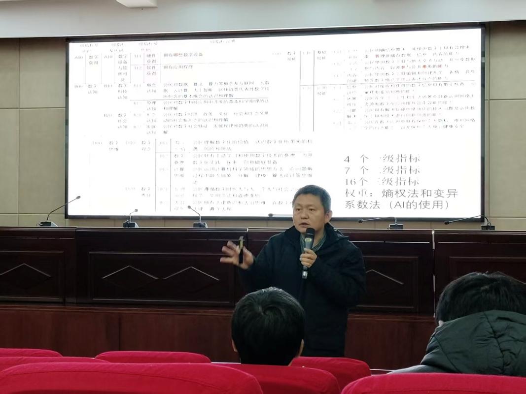 本网讯 12月24日下午,商学院副教授、博士谢坚面向师生开展了一场题为“贵州全民数字素养现状分析与培育路径”的学术讲座。本次学术活动是贵州师范学院“印山讲堂”“商学院科研周”系列学术讲座的一部分。