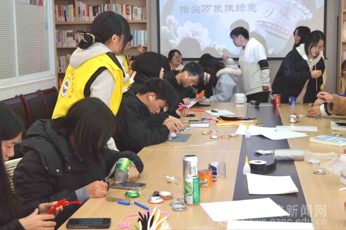 本网讯 为深入践行绿色发展理念,推动非物质文化遗产活态传承,11月28日,丽琼工作室在兰园举办“银辉绿韵承古意,指尖万象赋绿意”环保+非遗手工主题活动。来自全校的48名同学组成团队,本次活动以“变废为宝”为核心,将废旧易拉罐与扭扭棒转化为非遗文化创意载体。
