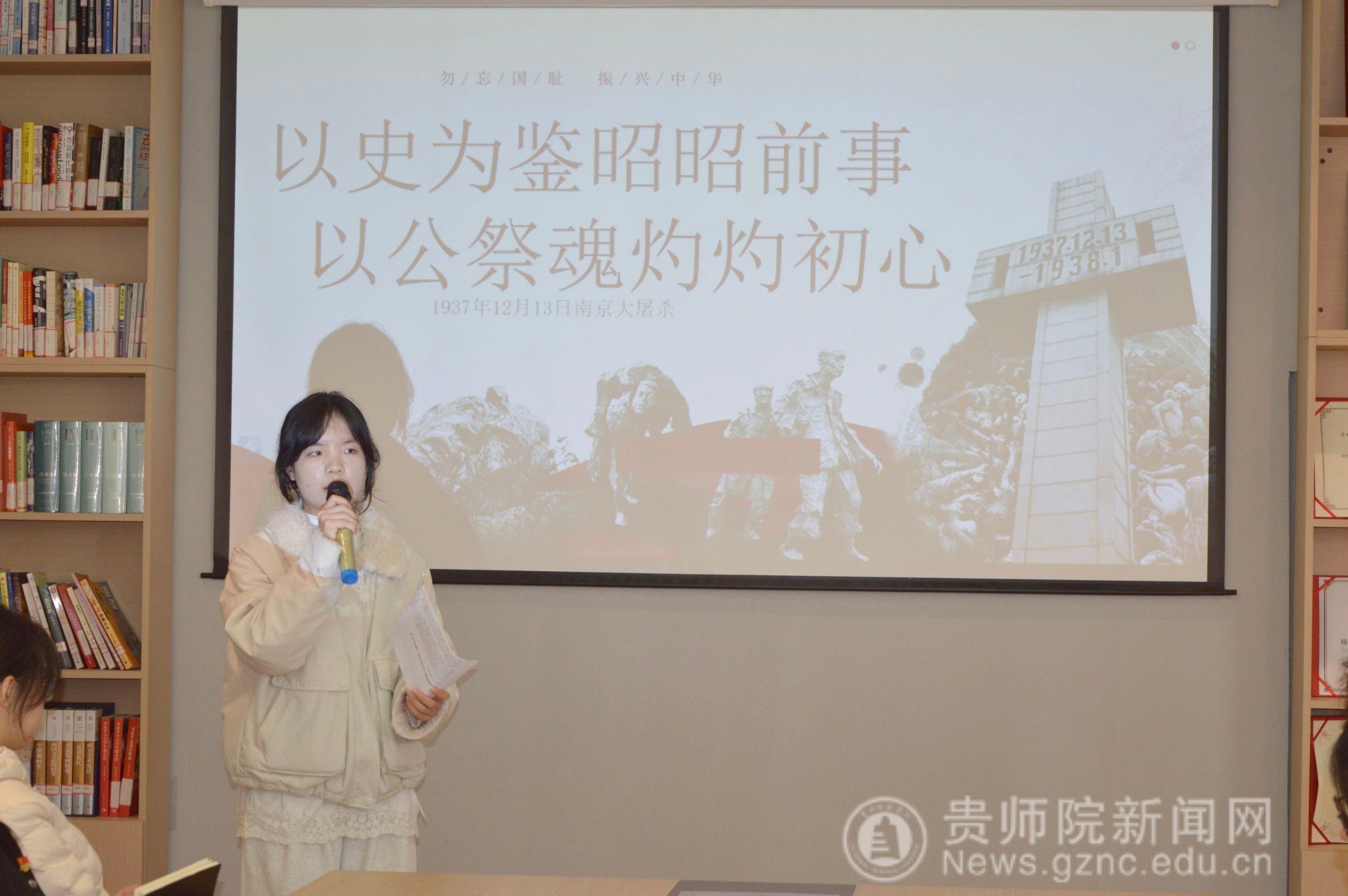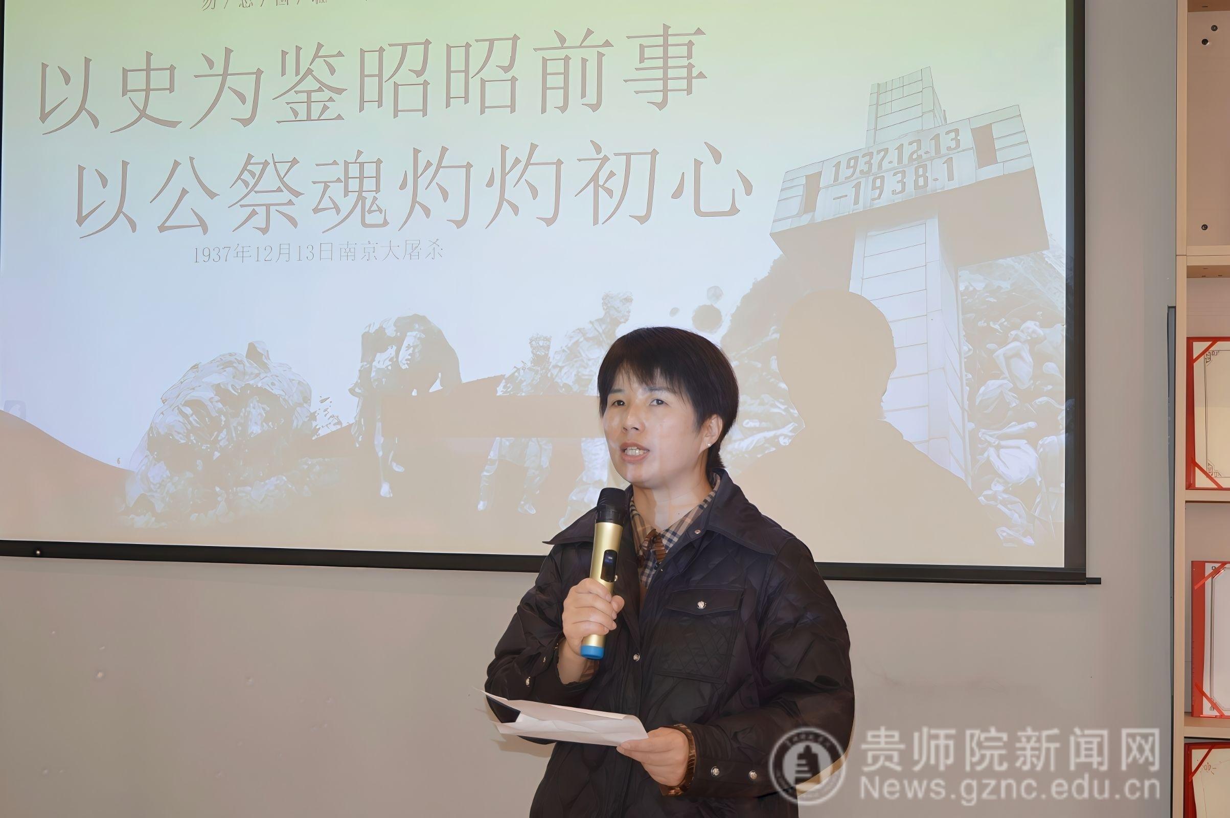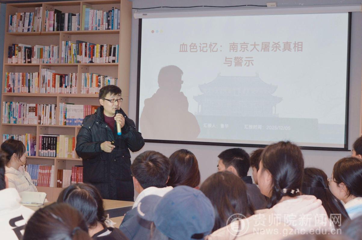 12月12日,在第十一个南京大屠杀死难者国家公祭日来临之际,贵州师范学院丽琼工作室于兰园举办“以史为鉴昭昭前事,以公祭魂灼灼初心”主题讲座。近70名师生齐聚一堂,共同铭记历史、缅怀先烈。