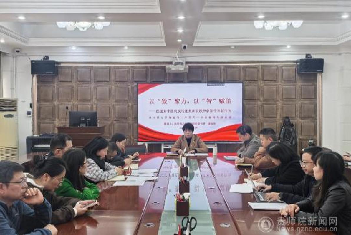 首先,谭丽琼围绕以“数”聚力,以“智”赋能——在服务中国式现代化贵州实践中彰显学院新作为,全面解读了党的二十届四中全会的核心要义与整体部署,清晰阐明了“十五五”时期作为基本实现社会主义现代化关键阶段的战略定位,深入解读了这一时期经济社会发展的指导思想、核心原则、主要目标,以及各领域的战略任务与具体落实举措。同时,结合省委十三届八次全会精神,立足学院发展实际,对如何将中央和省委的决策部署转化为学院的具体工作实践作出了明确安排。