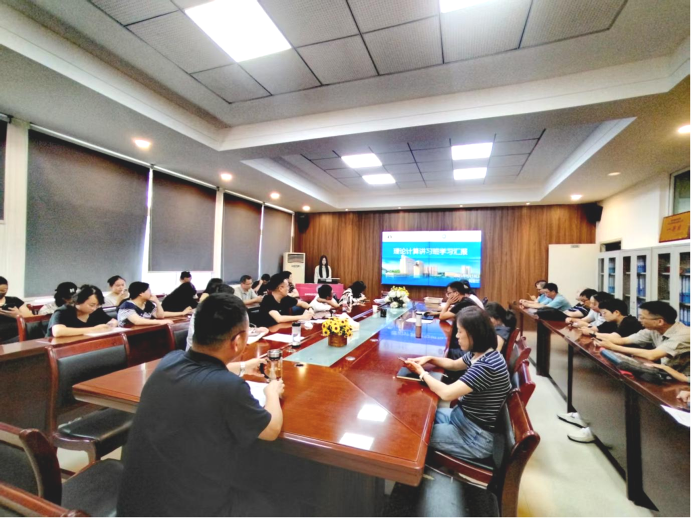 分享会上,周昱兰老师表示在讲习班期间,她全程深度参与课程学习、小组研讨与学术沙龙,不仅系统学习了智能计算物理方法的核心理论框架,还与来自全国各地的同行就 “AI + 物理” 研究中的技术难点、数据处理方法及未来研究方向展开深入交流,积累了丰富的跨学科合作资源。同时,周老师结合自身学习笔记与思考,分享了讲习班中的典型实践案例 —— 包括某团队利用深度学习算法解决传统数值方法难以处理的 “量子多体动力学演化” 问题、智能计算在凝聚态物理材料设计中的应用成果等。分享会结束后,老师们围绕 “如何在本科教学中融入智能计算物理元素”“学院现有科研项目与智能计算的结合点” 等问题展开热烈讨论。