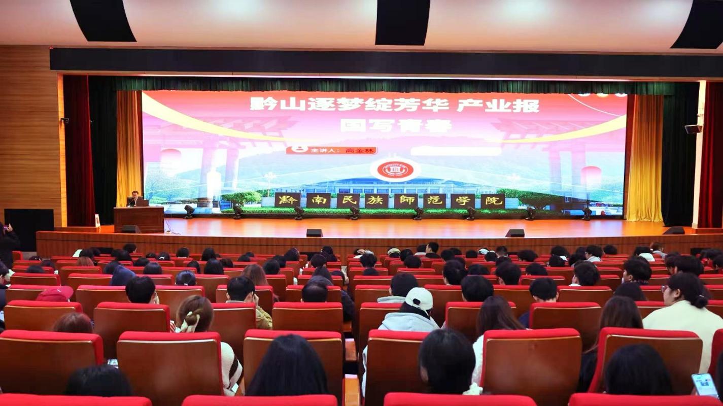 本网讯 2025年11月5日,化学与材料学院在综合实训楼裙楼一楼报告厅成功举办“黔山逐梦绽芳华,产业报国写青春”主题讲座。本次讲座特邀贵州胜威福全化工有限公司黔南片区采购经理高金林担任主讲,讲座由应用化学系主任孙婷主持,应用化学专业全体学生参加。