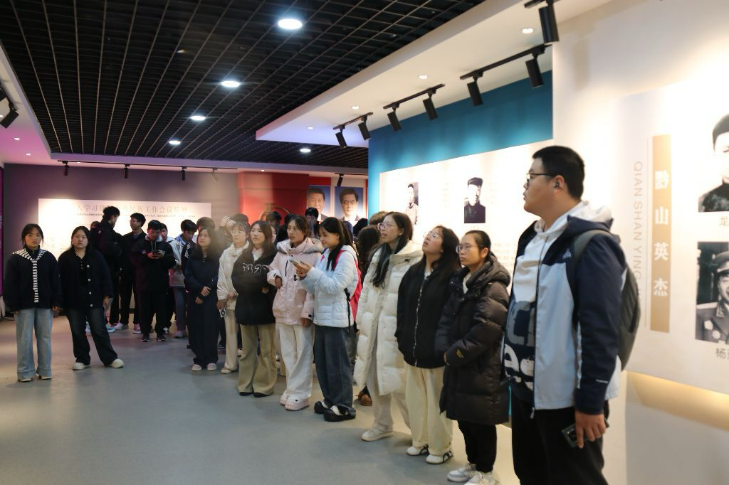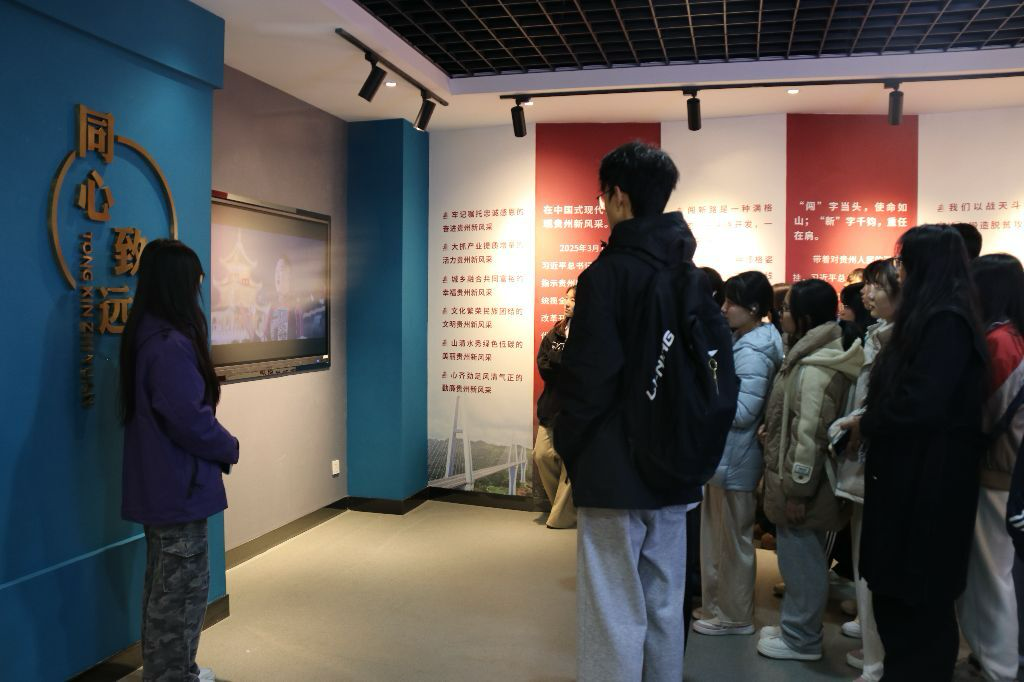在基地讲解员的引导下,同学们系统学习了中华民族共同体意识的核心要义与时代价值。讲解内容围绕民族团结和爱国主义的主线层层展开,从国家关于民族工作的顶层设计与战略思想,到贵州省在民族团结进步事业中的实践探索,再到乌当区及校内先进典型的感人事迹,全面呈现了各民族交往交流交融的生动图景。讲解中还融入了黔灵英杰的奉献故事、多彩贵州的民族文化魅力,使同学们在回顾历史与关注现实的过程中,深刻体会到“各民族共同团结奋斗、共同繁荣发展”的重大意义,也让铸牢中华民族共同体意识的内涵更加深入人心。