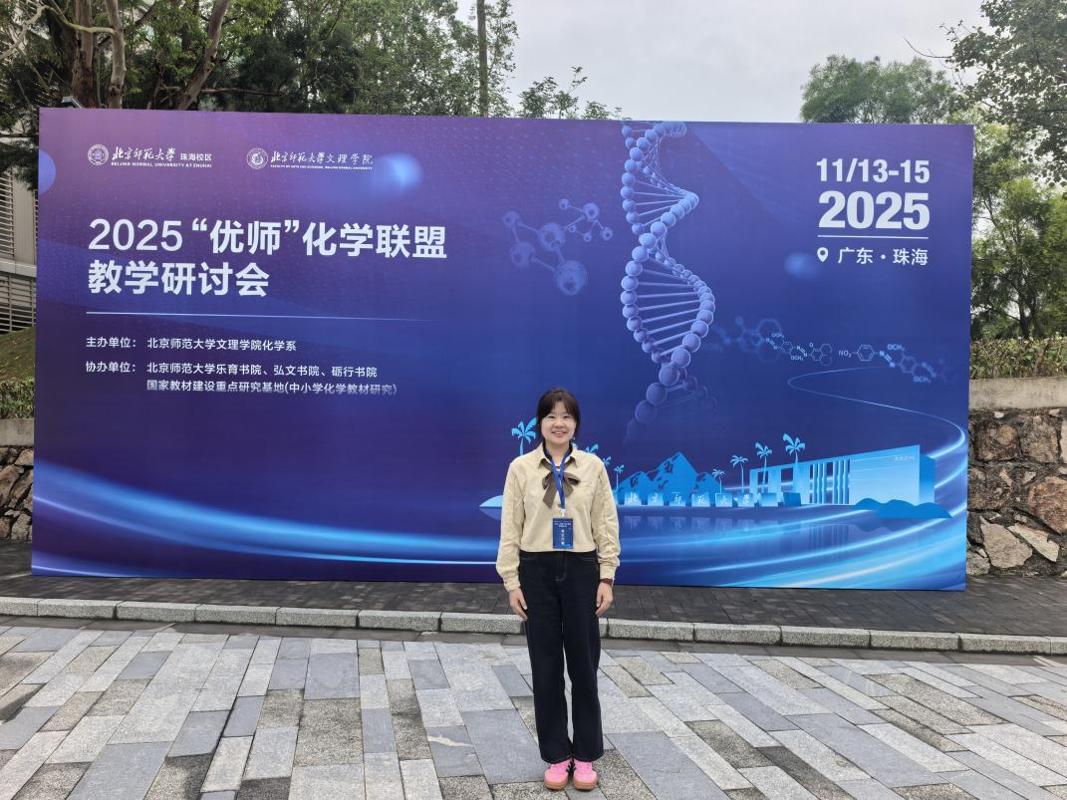 本次研讨会由北京师范大学文理学院主办,设置开幕式、主题报告、高等教育分会、基础教育分会及校园参观交流等环节,汇聚国内外近百所高校的专家学者与一线教师,围绕化学学科教学改革、师范生培养创新、课程思政实践、数智化教学资源建设等核心议题展开研讨。作为贵州师范学院参会代表,李艳莹全程参与会议各项议程,在高等教育分会场重点关注“化学一流专业建设”“师范生实践能力培养”等主题报告,认真聆听青海师范大学郭珍教授关于化学一流专业建设的工作汇报、西北师范大学黄静伟教授对“优师计划”培养实践的解析,并结合学校化学学科发展实际,就“如何依托地方特色优化化学实验教学体系”“如何提升师范生基层任教适配能力”等问题,与宁夏师范大学、内蒙古师范大学等联盟成员高校代表展开深入交流,分享学校在化学师范生“校地协同实习实践”“课程思政与专业教学融合”等方面的探索经验,获得与会专家的关注与认可。
