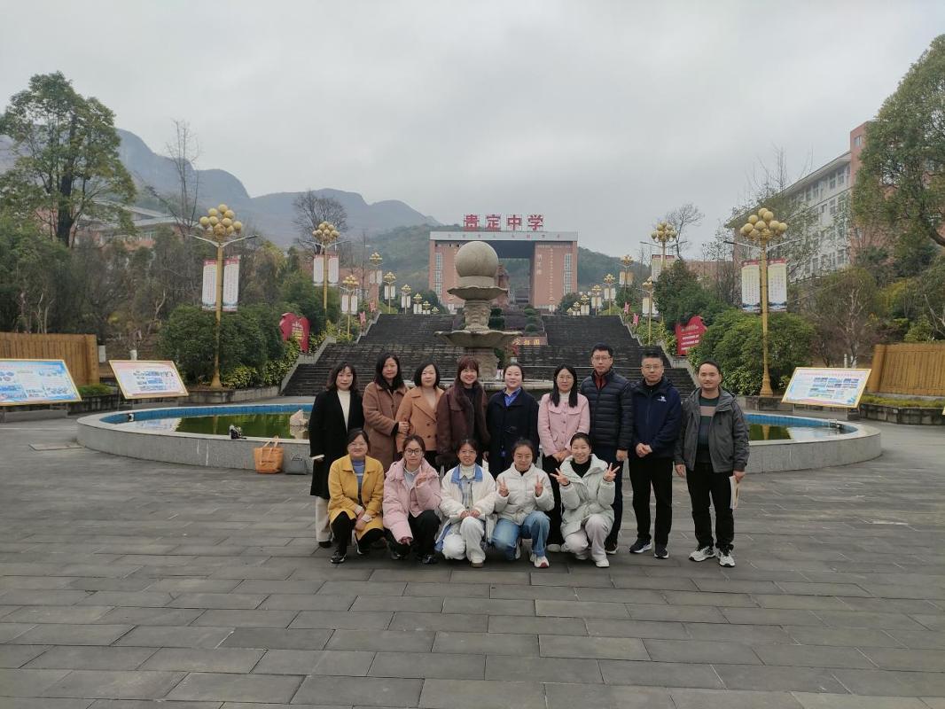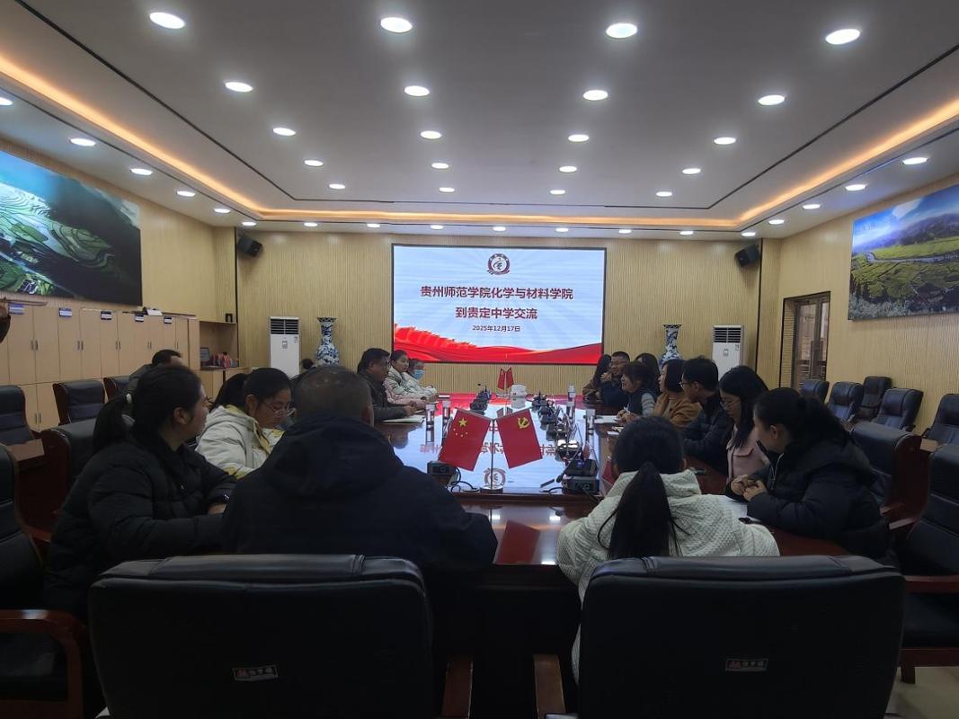本网讯 为深化实习工作内涵建设,提升实习生实践成效,加强学院与实习基地的沟通交流,深入了解中学对化学师范生的培养需求,进一步发挥我校服务地方基础教育的作用,12月17日,化学与材料学院副院长李艳莹、化学专业负责人江雪清及化学系教师吴婕、孙成涛、徐海丽、王婕、武汉清、吴红庆一行赴贵定中学看望实习生,并就化学专业人才培养方案开展专题调研。贵定中学党委书记邓燕国、教务处主任田志松、德育处主任朱佳勇、化学教师张微微、邓竹竹、陈春梅、刘星辰以及我校实习生共同参与此次活动。