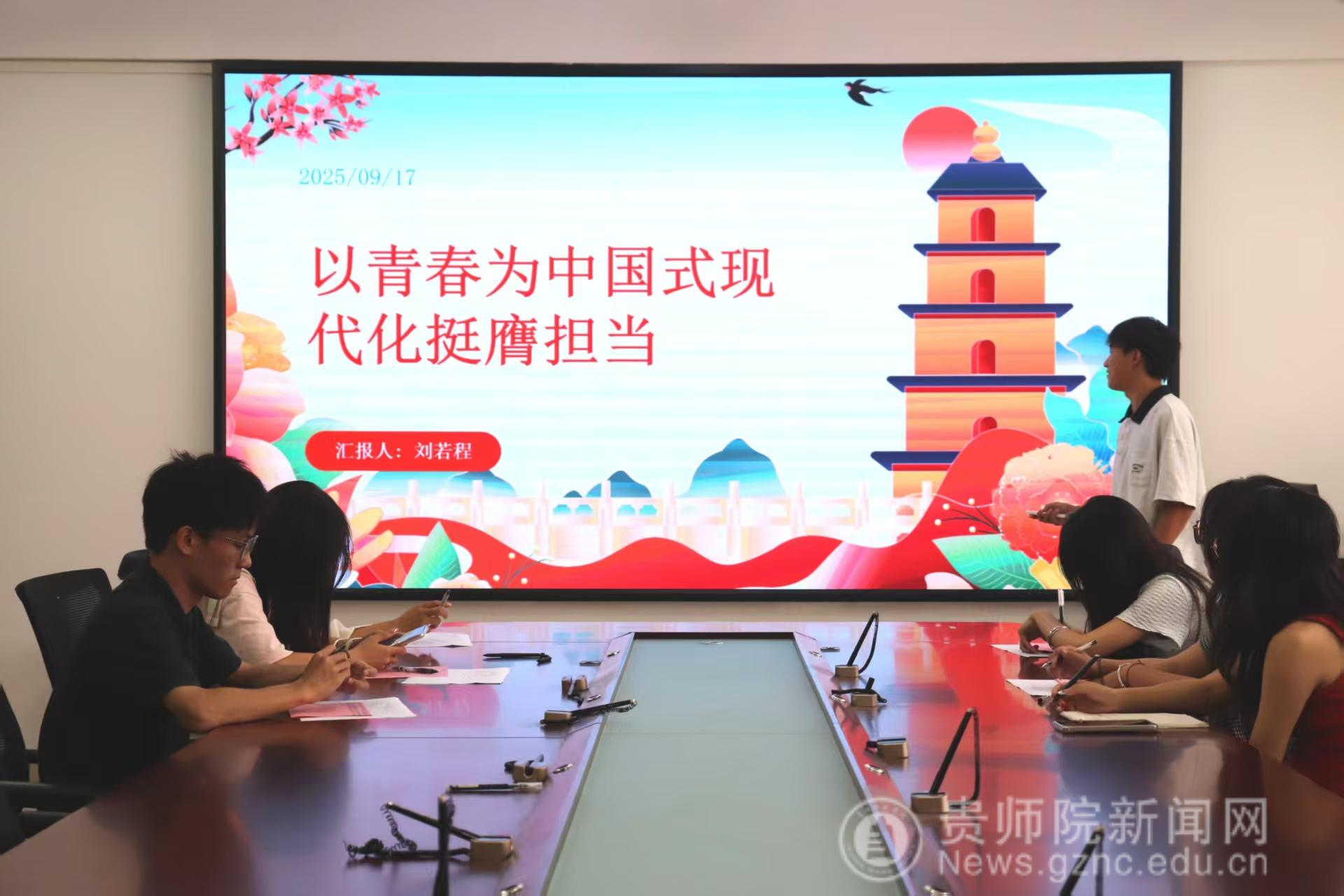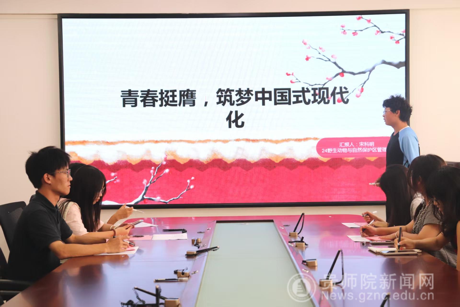 团课中,各支部分工协作、亮点纷呈。24级应生一班支部聚焦西江千户苗寨,讲述当地青年推动苗绣、银饰锻造等非遗从小作坊零散干产业链抱团闯的转型,通过非遗主题民宿等创新实践,为乡村振兴注入青春动能;24生物科学班支部以遵义会议和长征精神为核心,介绍有志青年用红色主题直播、沉浸式研学活化红色文化的做法,阐释长征精神对青年学业科研的激励作用;24野保班支部和24应生二班支部则围绕中国式现代化的内涵与时代意义等三大板块,从理论层面剖析核心要义,结合实践案例展现青春与时代的同频共振。