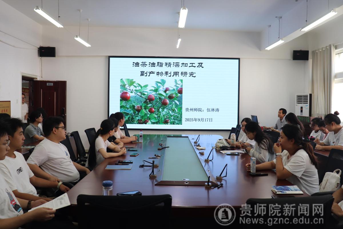 9月17日,上午,伍林涛在宁静楼611作《油茶油脂精深加工及副产物高附加值利用研究》报告,剖析油茶产业技术路径,解答学生提问;张荣祥讲解《三代基因组测序在复杂天然产物生物合成途径解析中的应用》,引发前沿技术探讨;潘聪于宁静楼618开展《肿瘤免疫治疗前沿医学技术综述》,与22生科学生互动交流。下午,赵月梅在宁静楼611主讲《绞股蓝属系统发育研究》,与24应生2班学生和硕士研究生深入交流植物系统学问题。