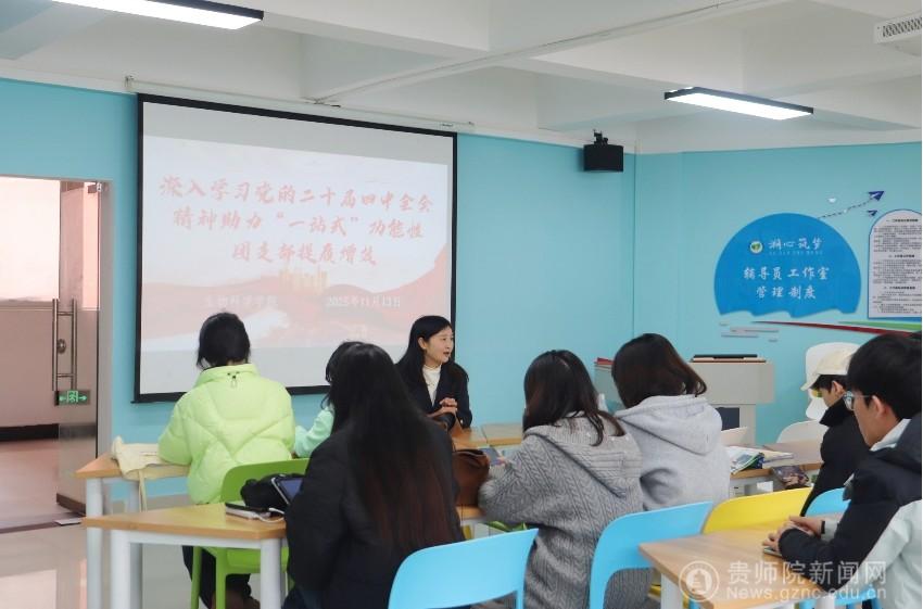 本网讯 为深入学习党的二十届四中全会精神,推动“一站式”功能性团支部提质增效,11月13日中午,生物科学学院主席团及见习近平总书记团成员齐聚溯心筑梦工作室,开展专题学习研讨活动,活动由团委老师张彩艳领学。